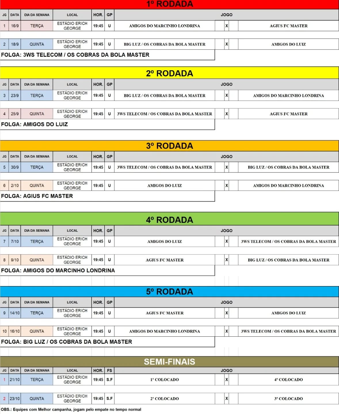2º CAMPEONATO DE FUTEBOL MASTER 45+ COPA - BOLETIM OFICIAL