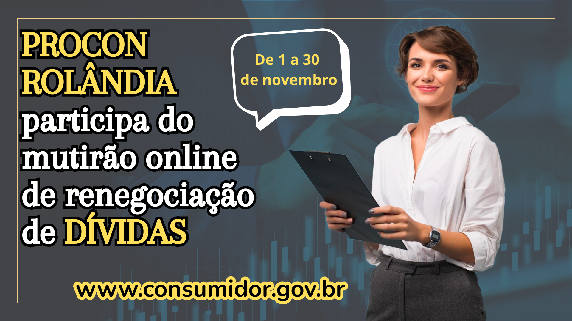 PROCON DE ROLÂNDIA PARTICIPA DO MUTIRÃO DE RENEGOCIAÇÃO DE DÍVIDAS E EDUCAÇÃO FINANCEIRA   O Procon Municipal de Rolândia, em parceria com o Procon-PR, com a Secretaria Nacional do Cons...