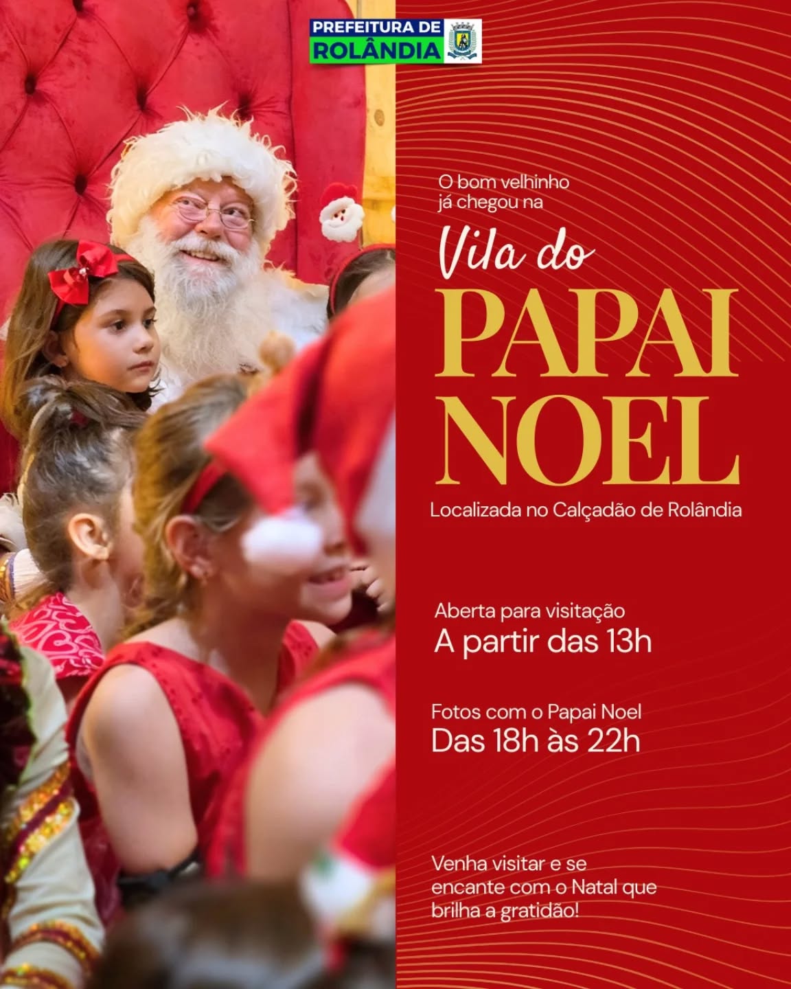 Chegada do Papai Noel na Vila Oliveira e ajustes na programação do Natal “Brilha a gratidão” A Prefeitura de Rolândia, por meio da secretaria de Cultura e Turismo, divulga ajustes na programação...