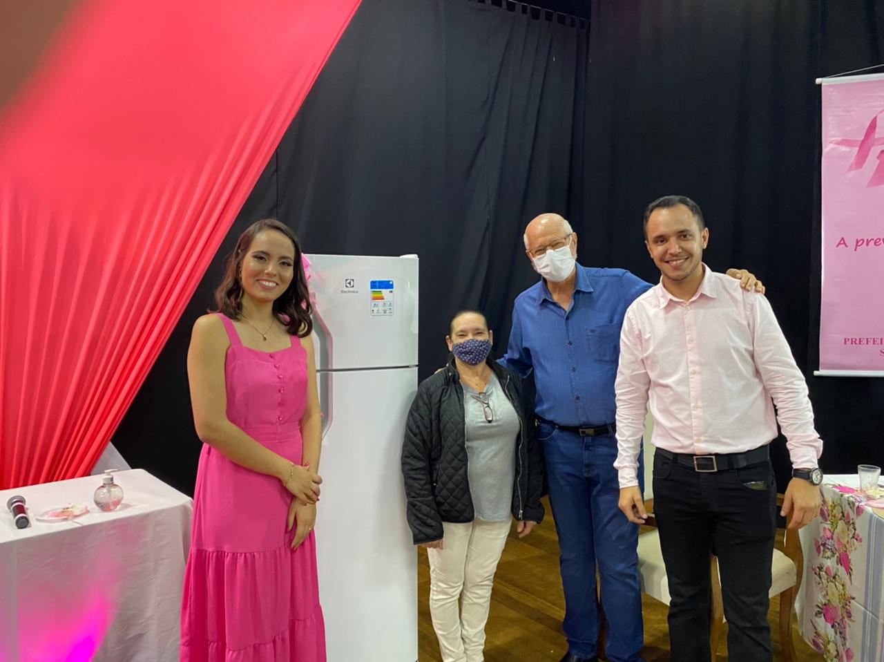 LÚCIA CAPOSSI, DO JARDIM NOBRE, GANHOU A GELADEIRA DA "SUPERLIVE DO OUTUBRO ROSA"