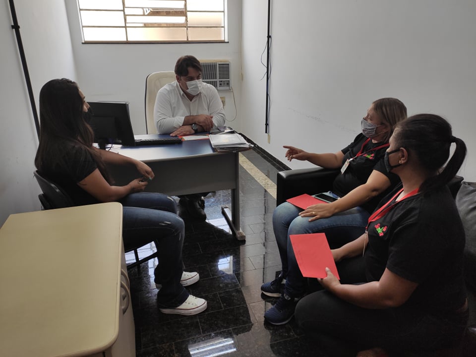 O vice-prefeito Márcio Vinícius recebeu em seu gabinete, nesta segunda-feira, dia 7, a assistente social Camila Abreu, a instrutora de aprendizagem Roseli Cordeiro e a psicóloga social Marcela Alves, que são representantes do