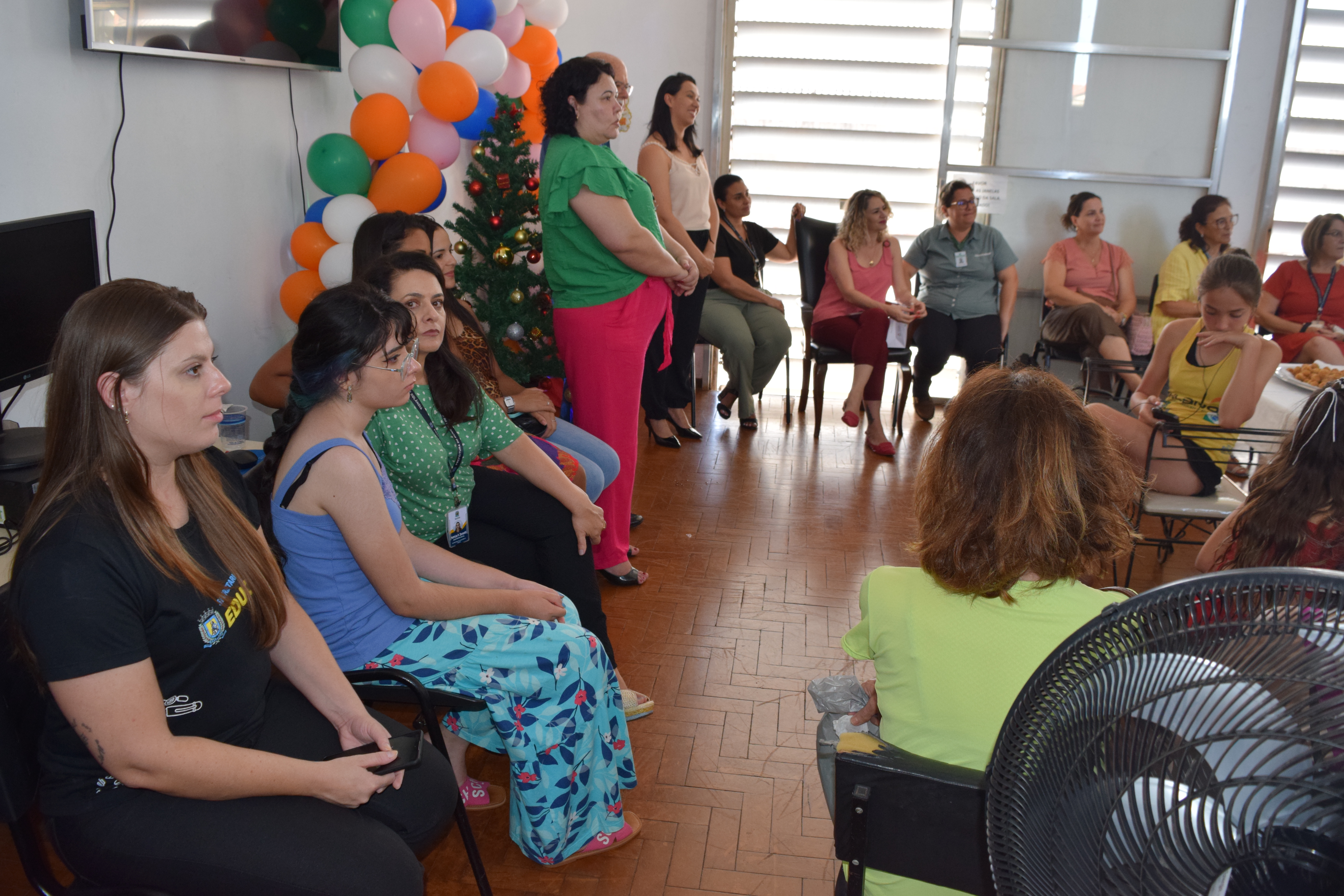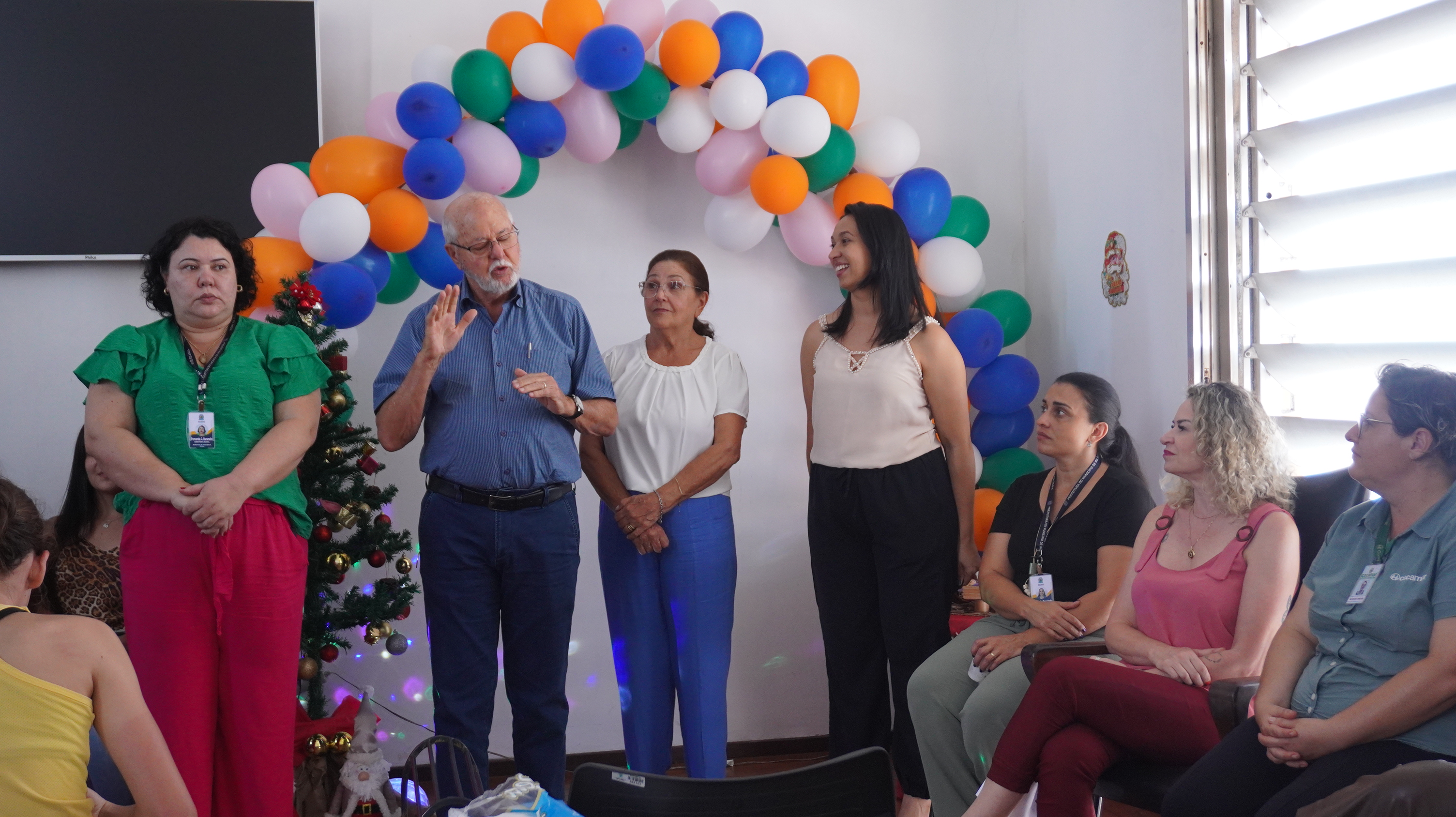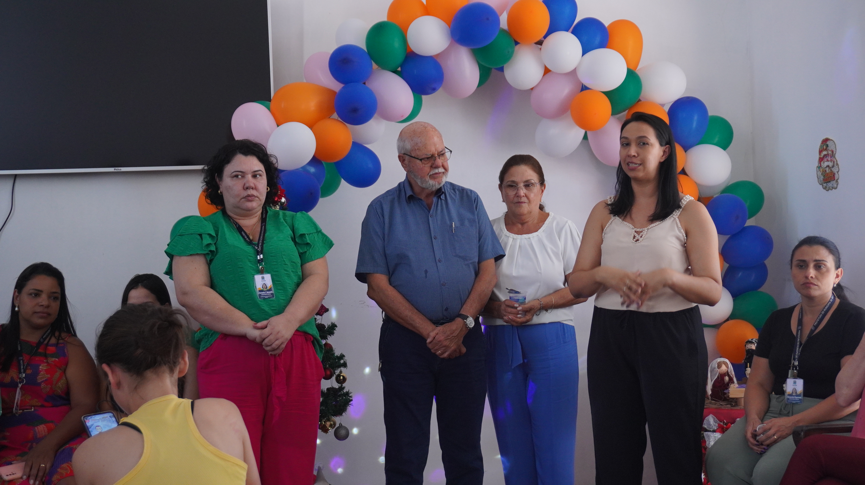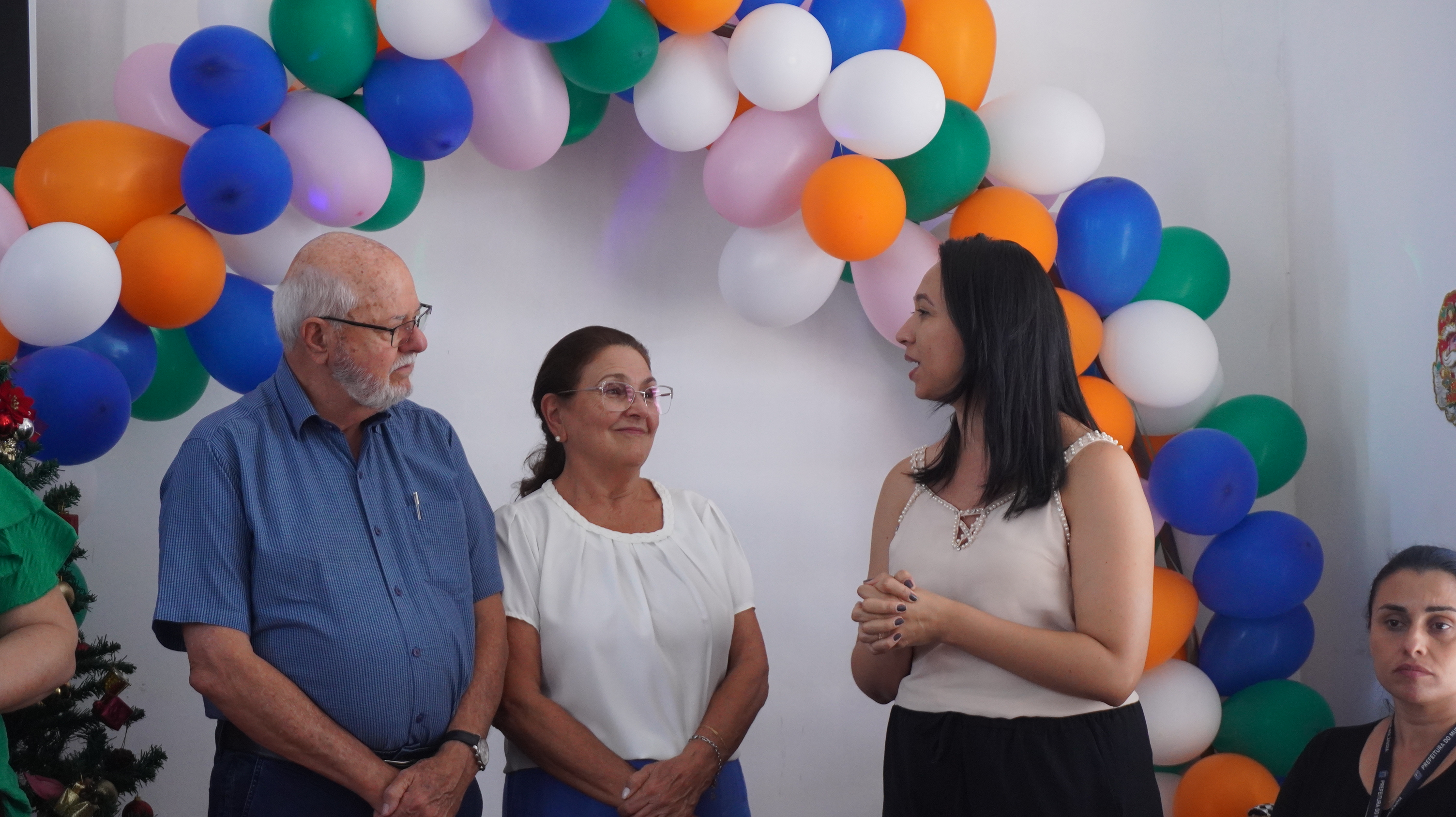 O prefeito Ailton Maistro, a primeira-dama Ana Maria Mungo Maistro, a secretária de Assistência Social, Michele Pereira e a diretora de Assistência Social, Fernanda Buranello prestigiaram o encerramento das atividades dos conselhos municipais em 2023.