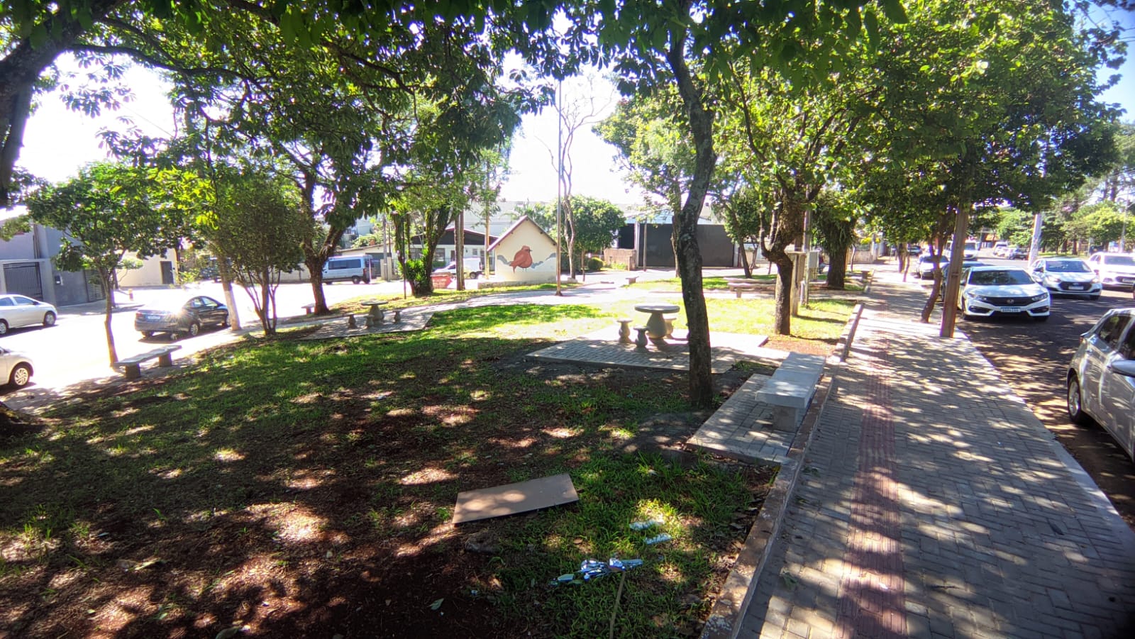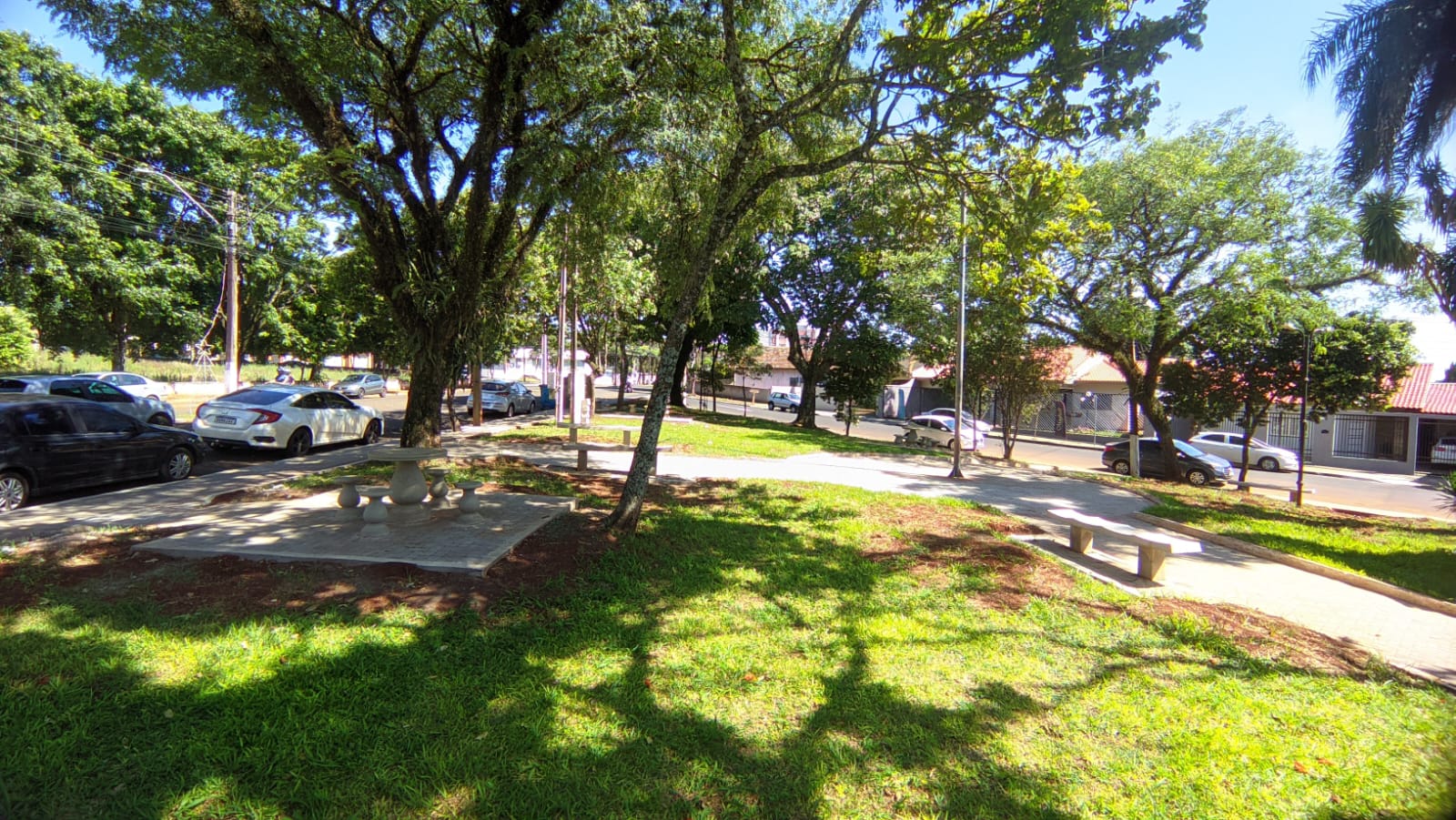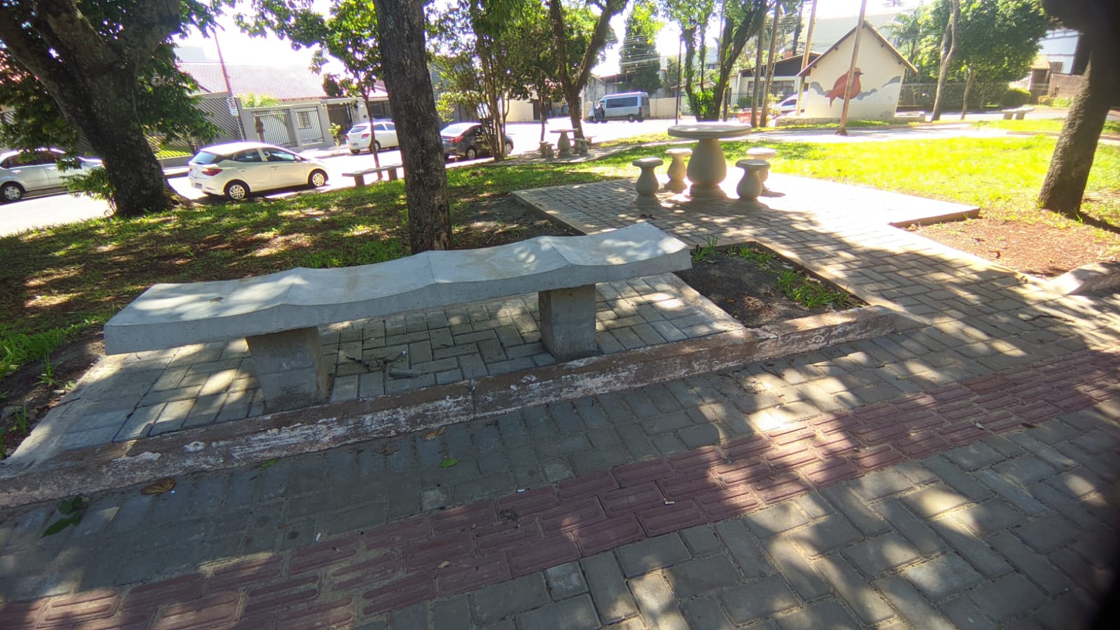Foram instalados bancos, mesas, cadeiras, calçamento interno, calçadas com paver e piso tátil, com o objetivo de revitalizar o espaço, permitindo o uso com qualidade por parte das famílias rolandenses.