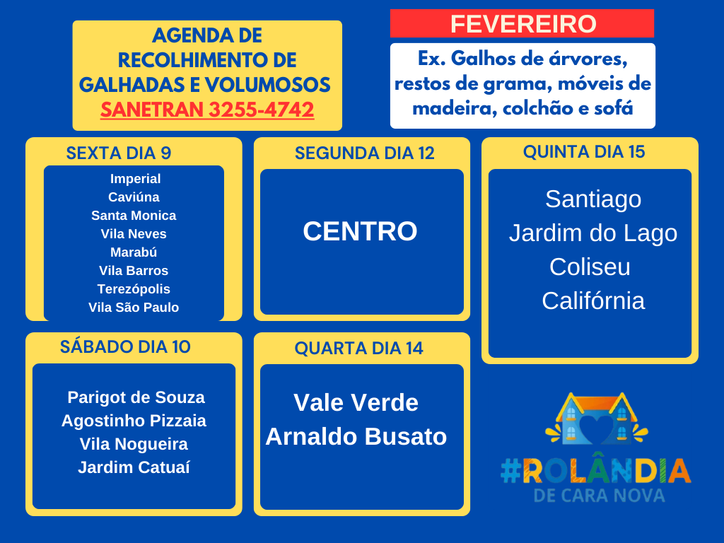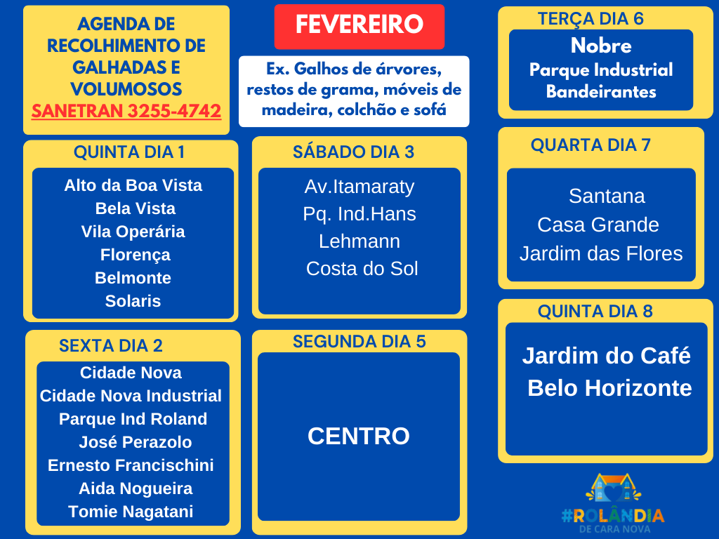 AGENDA DA SANETRAN PARA RECOLHER GALHADAS E VOLUMOSOS - FEVEREIRO