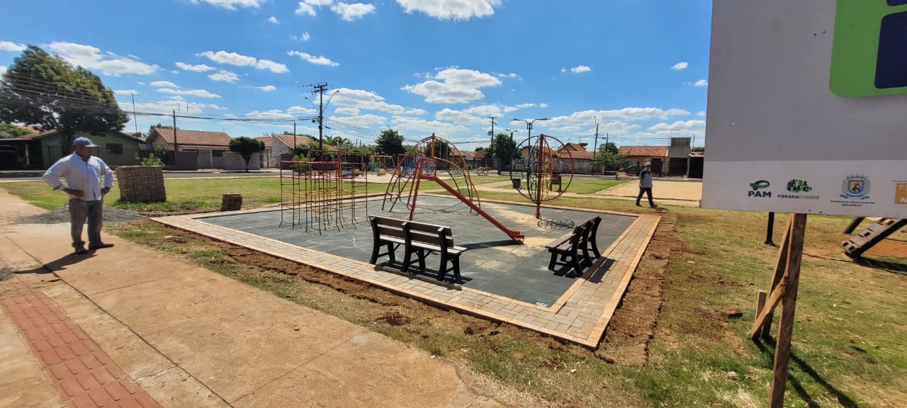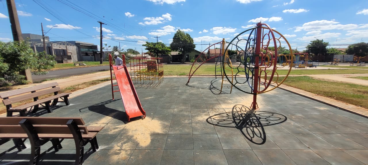 As secretarias de Serviços Públicos e de Infraestrutura informam que foi concluída a obra de implantação de um parque infantil com piso tátil.