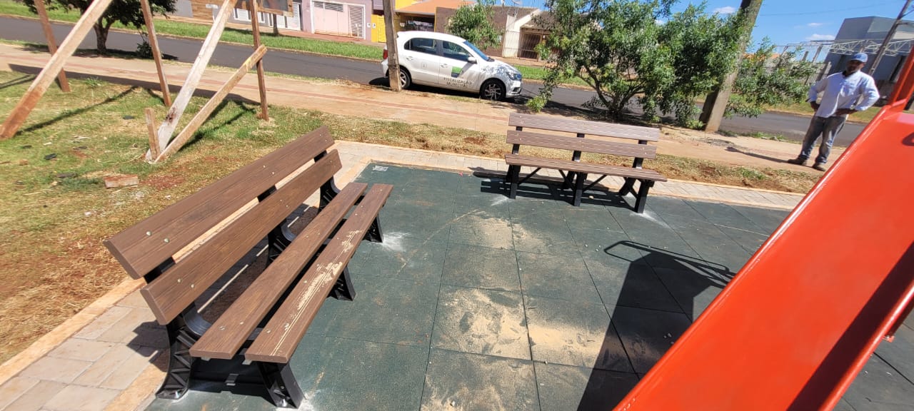 Foram instalados vários brinquedos além de bancos no entorno para comodidade das famílias que levam seus filhos