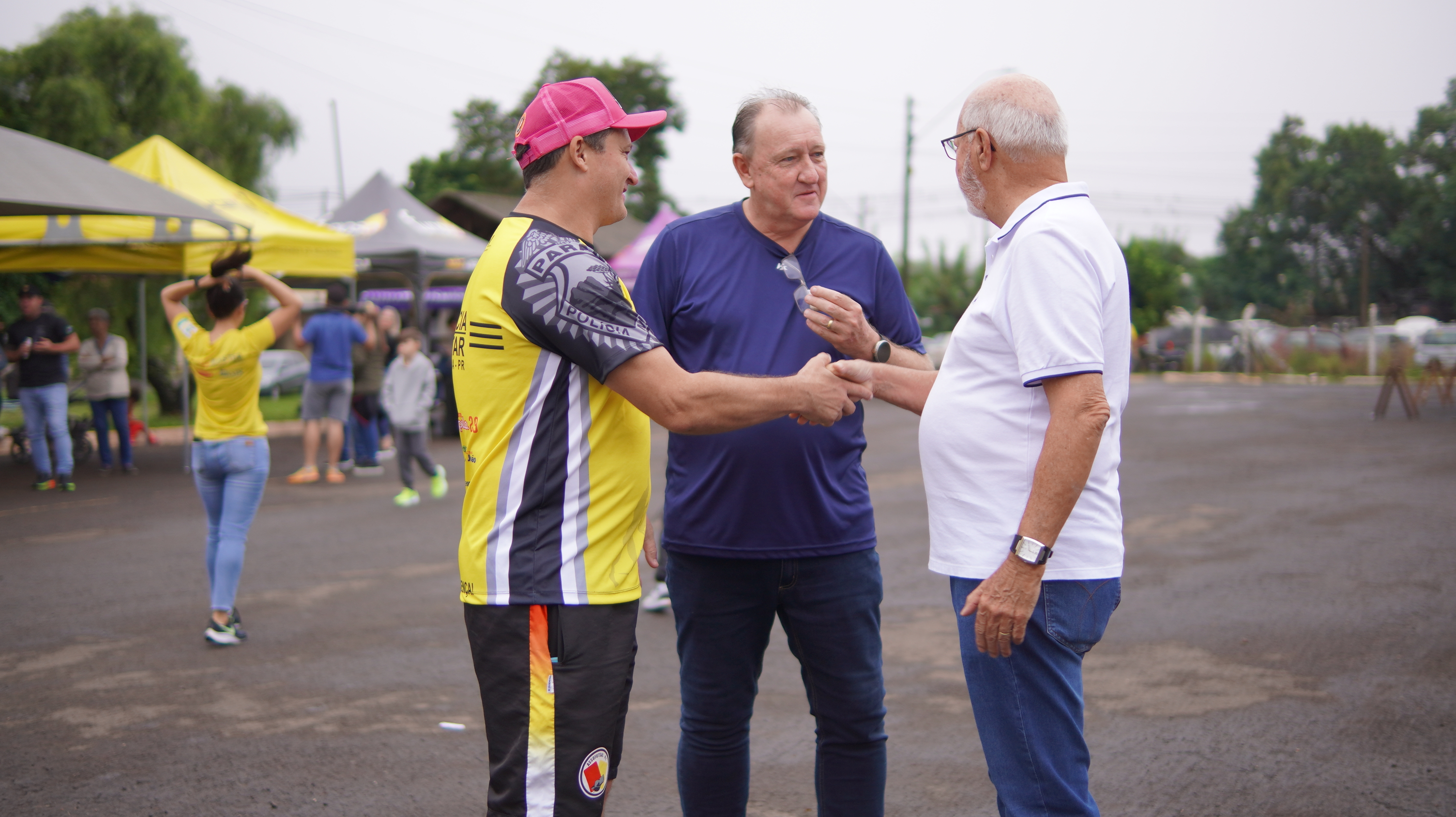 O prefeito Ailton Maistro, o secretário de Esportes, Odyr Polaco, o diretor de Esportes, Flávio Marques, a tenente Thais Barroca e o comandante do 15º Batalhão de Polícia Militar, Major Juarez Saldanha prestigiaram neste domingo (14), a 3º Corrida Solidária. O evento foi promovido pelo15º Batalhão da Polícia Militar com apoio da Prefeitura de Rolândia, por meio da secretaria de Esportes.