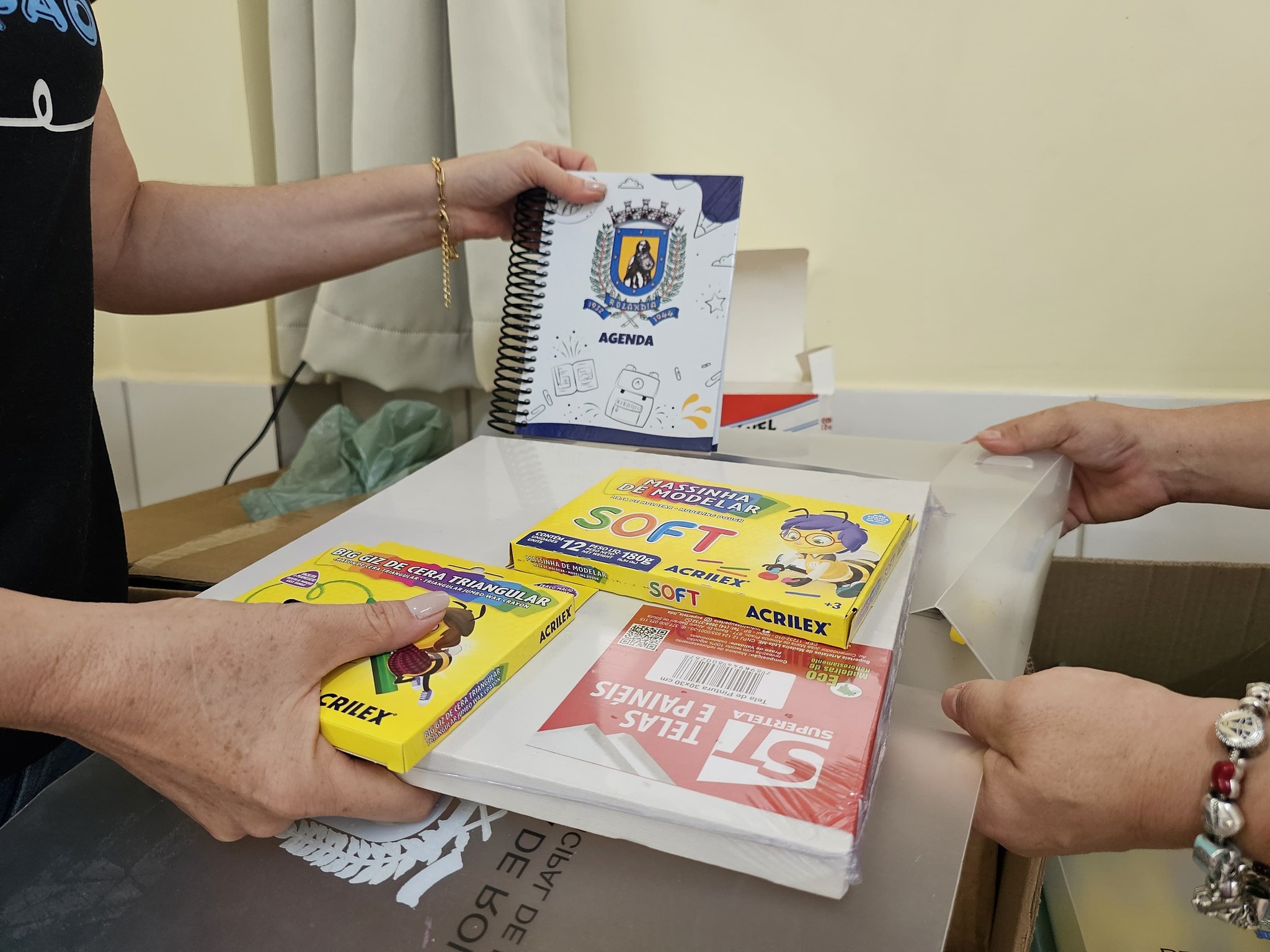 Os estudantes receberam kit´s de material escolar e os uniformes, por meio do cartão “Bora, estudar”!