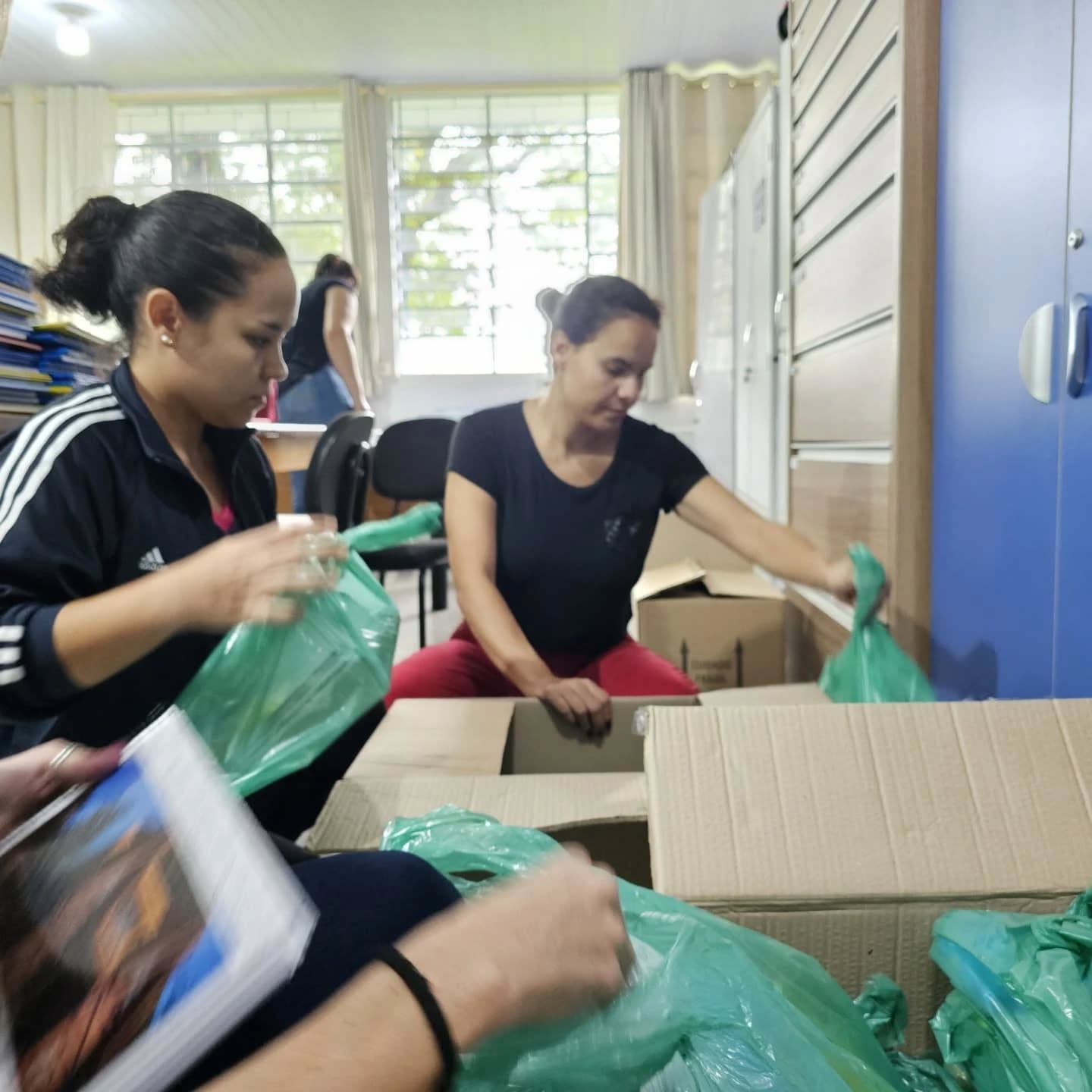 O material escolar recebido ficará em posse do aluno na instituição, sendo levado para casa aquilo que a instituição julgar necessário, conforme organização das mesmas.