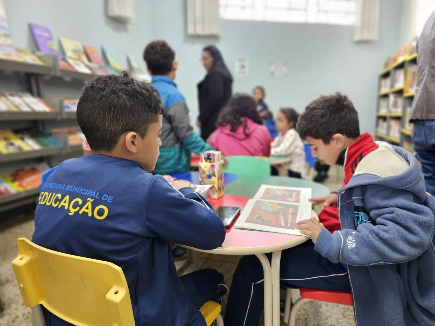 8 horas na Biblioteca Central, com a visita de 30 alunos da escola municipal Professor Fábio Nogaroto (Áida Nogueira) - fotos.