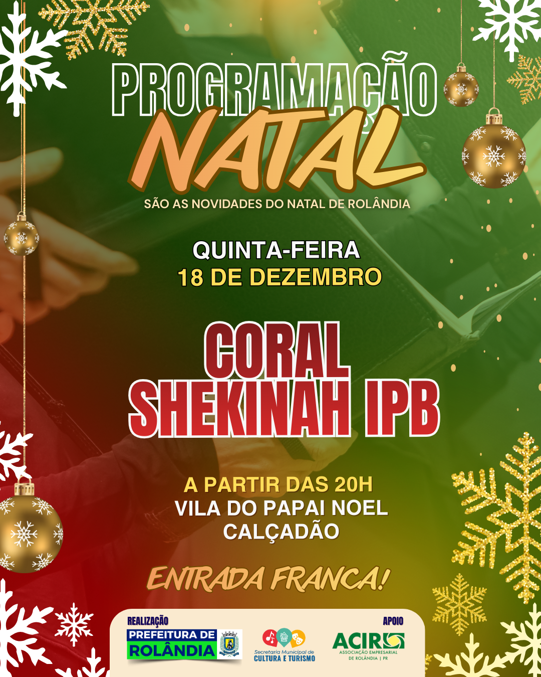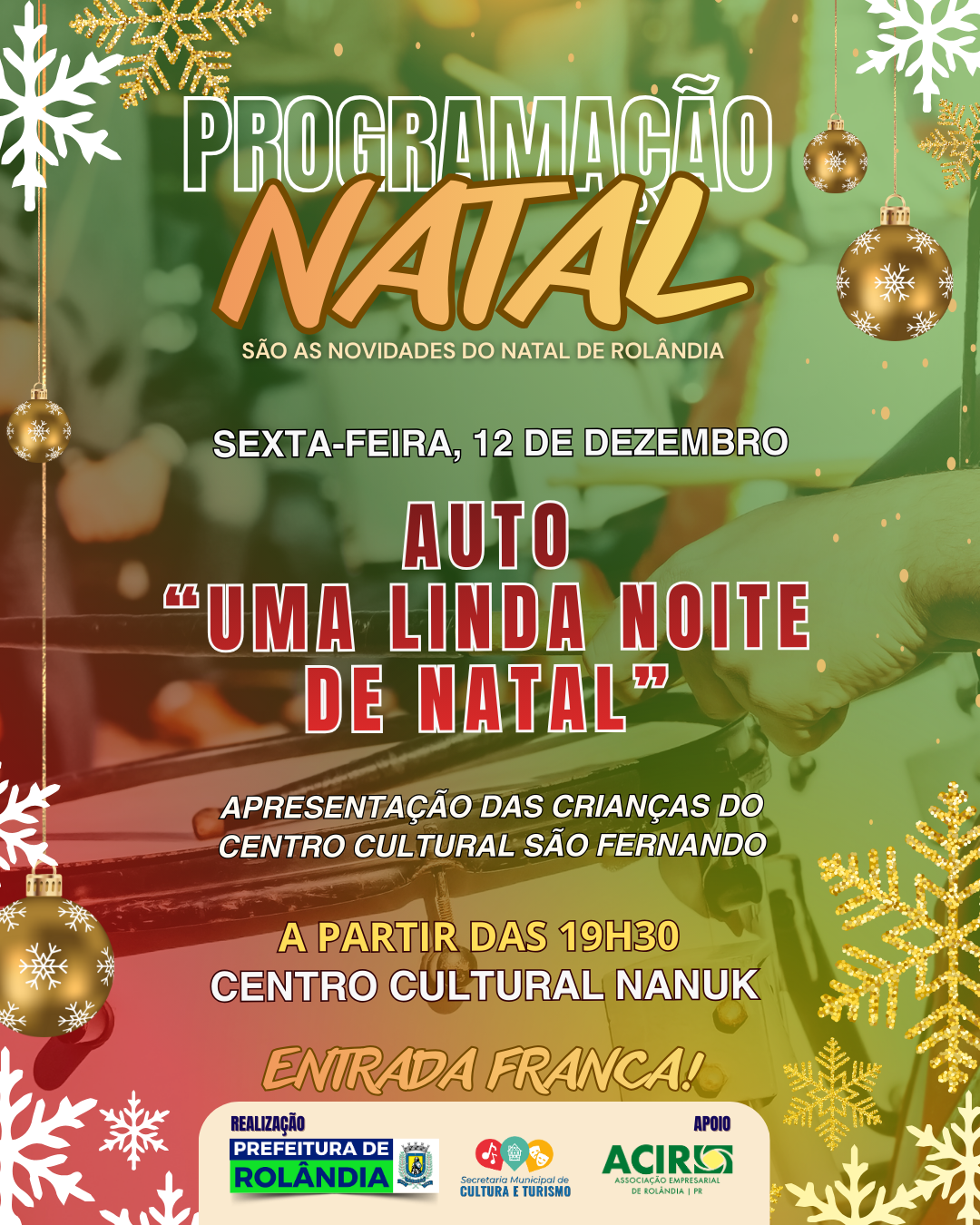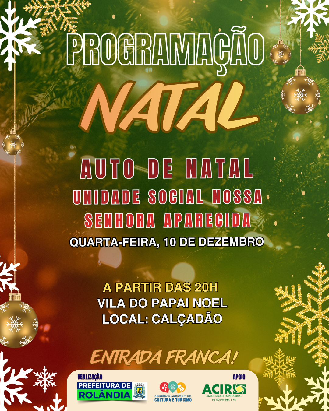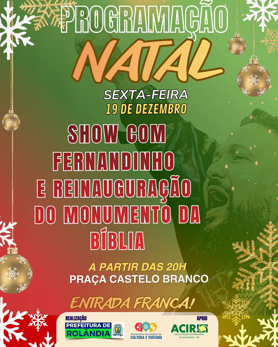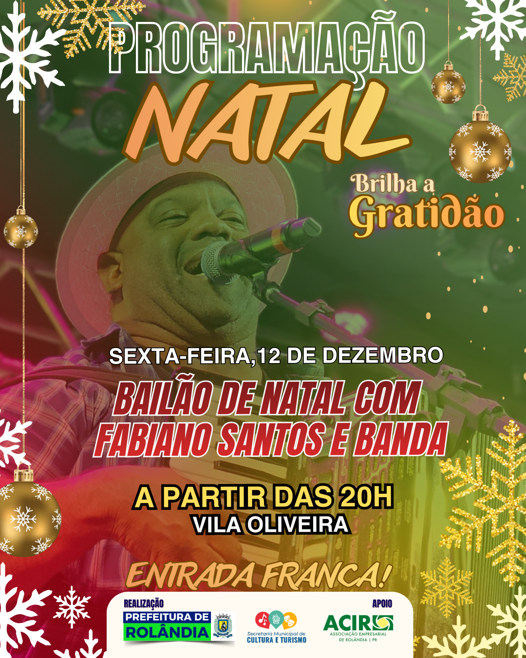A Prefeitura de Rolândia, por meio da secretaria de Cultura e Turismo, divulga ajustes na programação do Natal 2025 “Brilha a gratidão”!