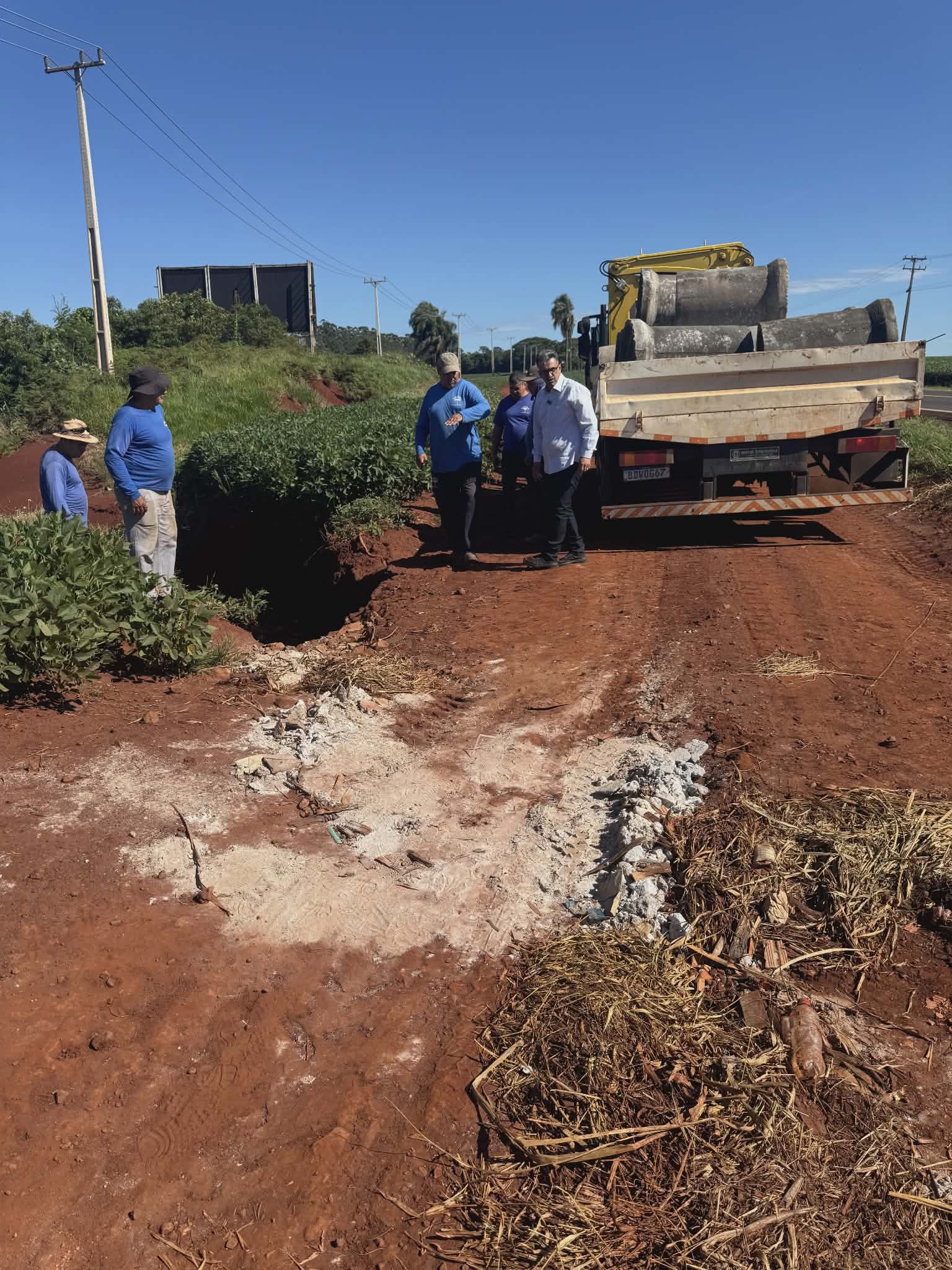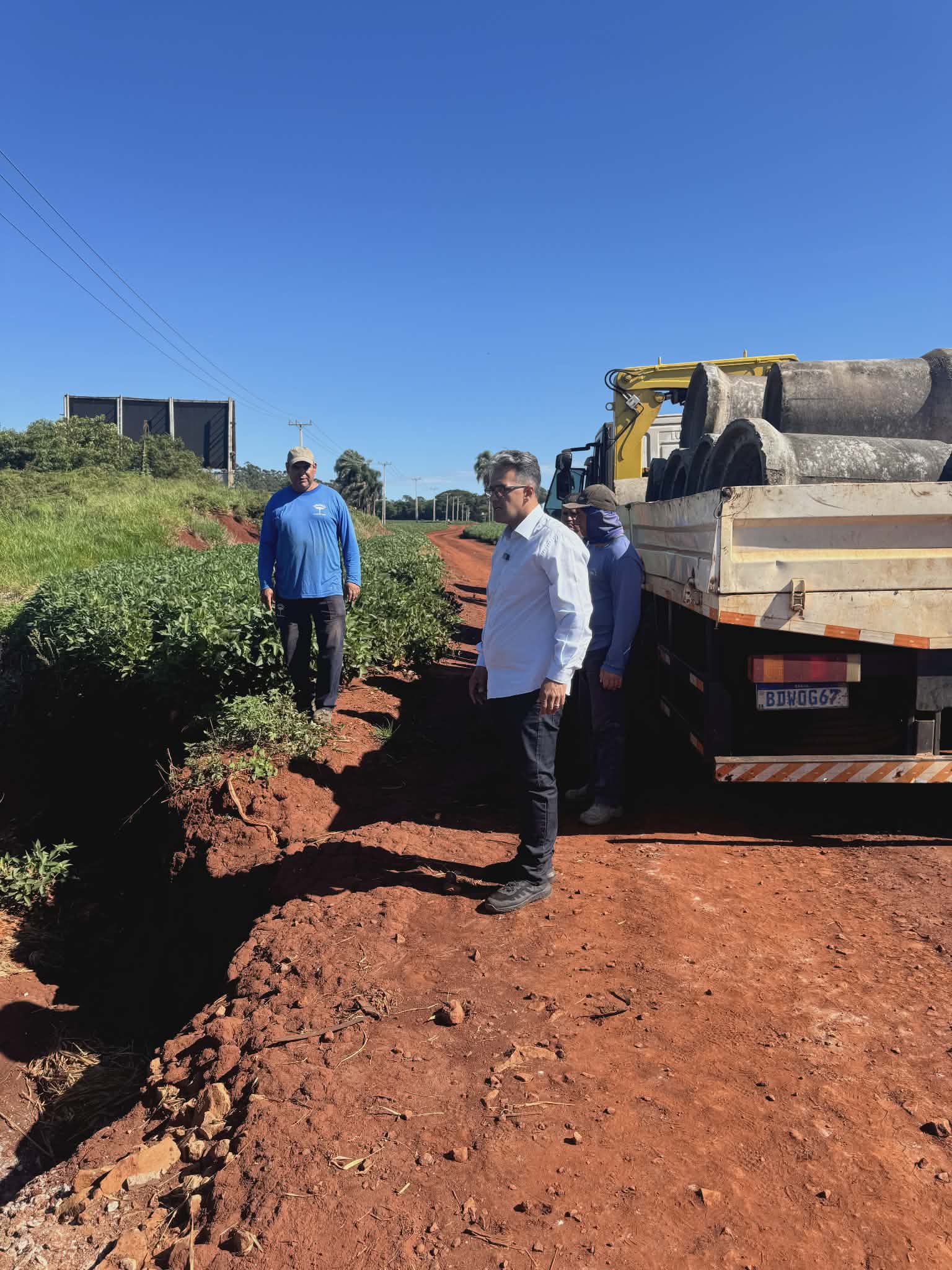 O DER cedeu o material e a Prefeitura entra com a mão-de-obra. Tubulações mais largas vão ser implantadas na região para evitar que a água da chuva atrapalhe o ir e vir dos usuários do trecho, além de garantir aos agricultores e produtores rurais do entorno mais segurança para escoar a produção.