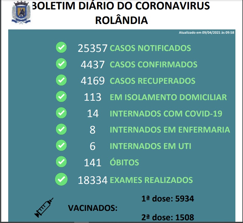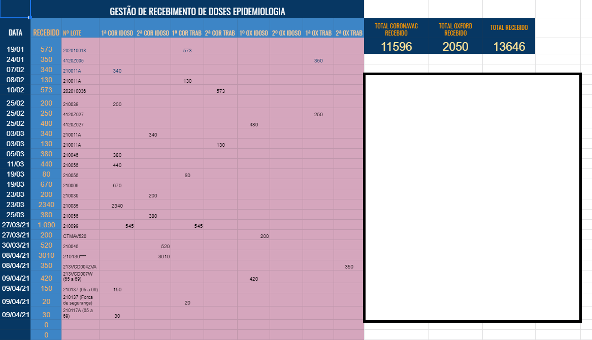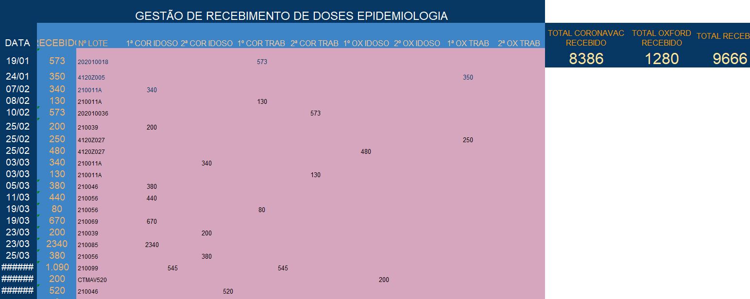 A Secretaria Municipal de Saúde informa que recebeu nesta sexta-feira, dia nove de abril, 3.960 doses de vacinas contra a covid-19 (inicialmente seriam 3.005 doses, porém, o município recebeu mais). Dessa nova remessa enviada pela Secretaria Estad...