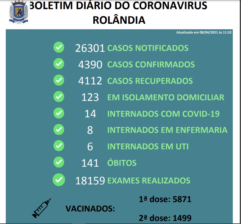 A Secretaria Municipal de Saúde divulgou o "PLANO DE AÇÃO DE VACINAÇÃO CONTRA A COVID-19 MUNICÍPIO DE ROLÂNDIA - VERSÃO 6". Confira em anexo....