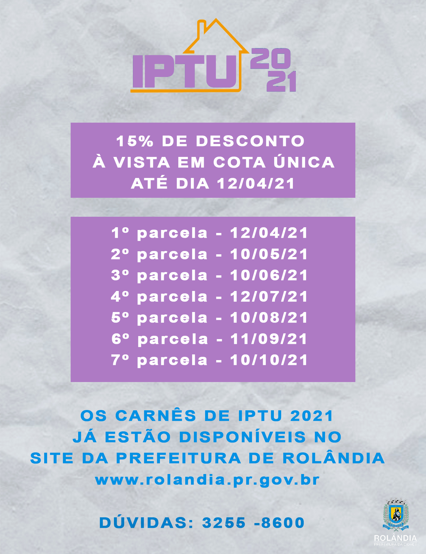 A Secretaria Finanças comunica sobre o pagamento dos carnês do IPTU 2021.A taxa deste ano tem a correção da inflação oficial de 2,86% na comparação com o imposto de 2020. São 29.989 carnês, sendo 23.689 prediais (na cor verde) e 6.300 terri...