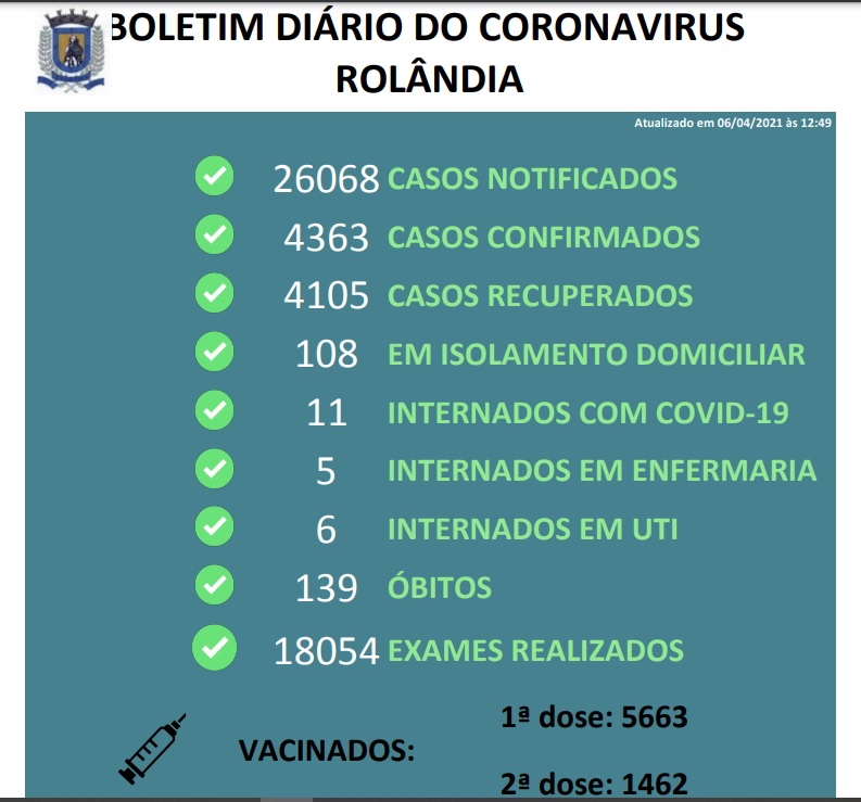 Com pesar e solidariedade aos parentes e amigos, a Secretaria Municipal de Saúde informa o registro de um óbito de pacientes da cidade em decorrência de covid-19:66 anos, MasculinoExame positivo em: 10/03/2021Óbito dia 05/04/2021Comorbidades: Hi...