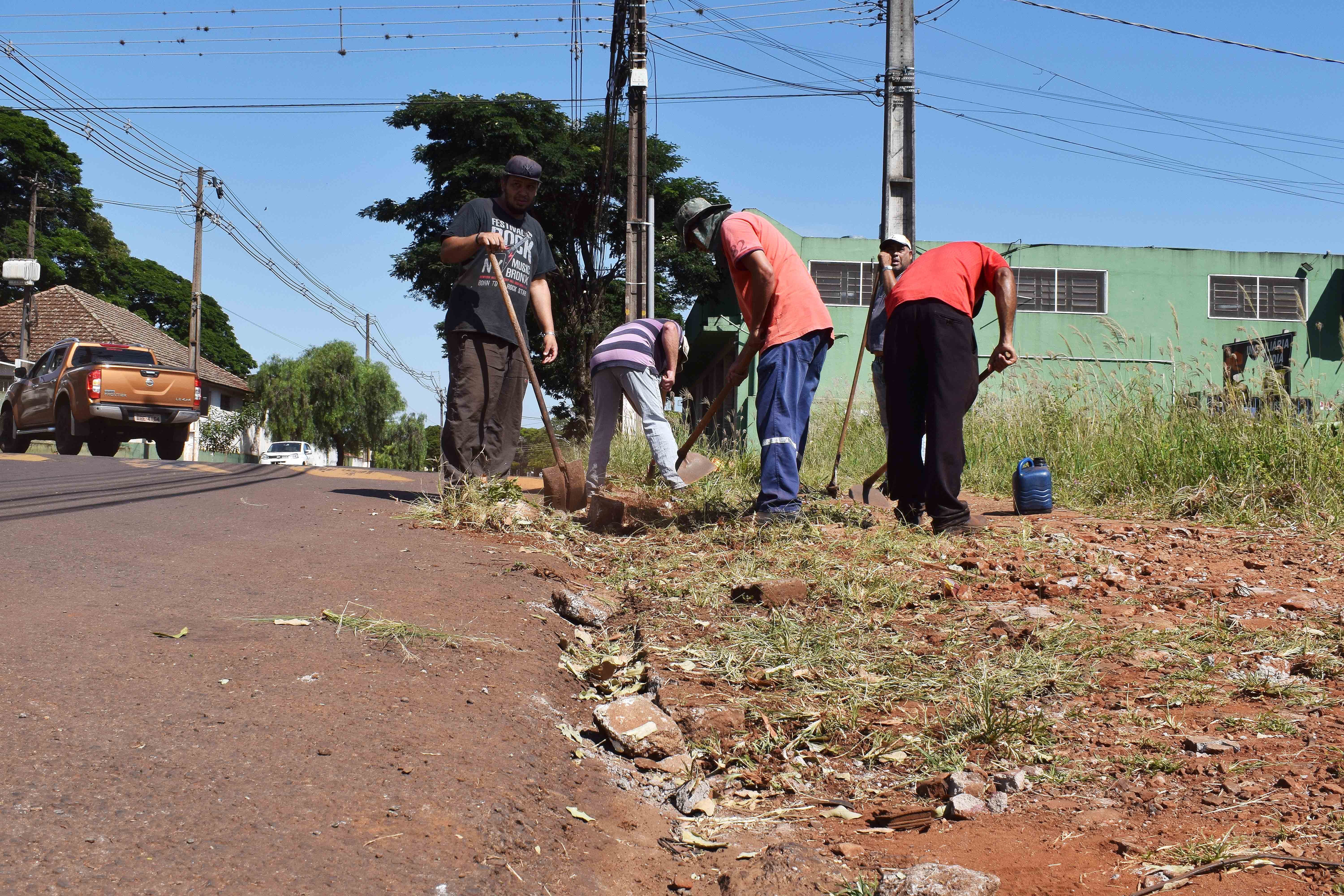 Equipes das Secretarias de Infraetsrutura e de Serviços Públicos realizaram a limpeza e adequações nos meios-fios ao longo da Avenida Ayrton Rodrigues Alves....