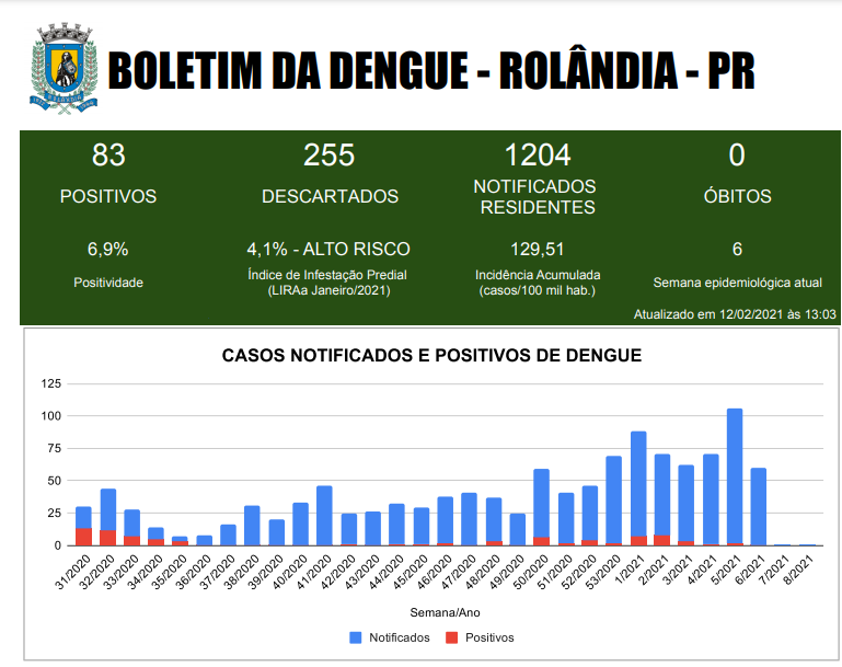 A Secretaria Municipal de Saúde divulga o Boletim da Dengue...
