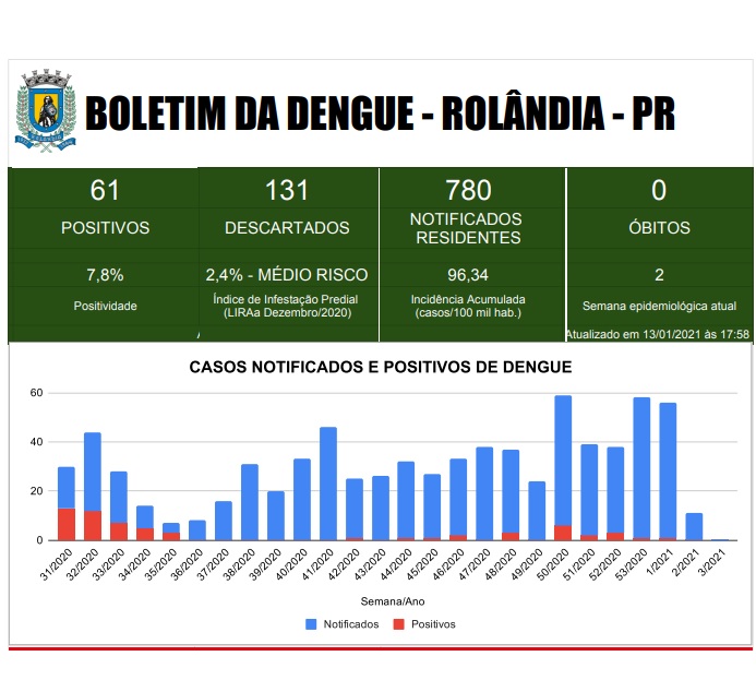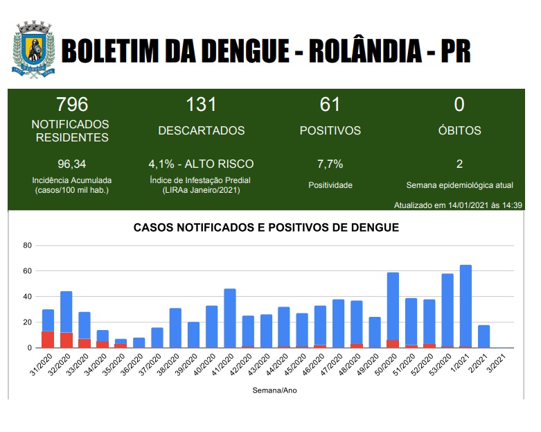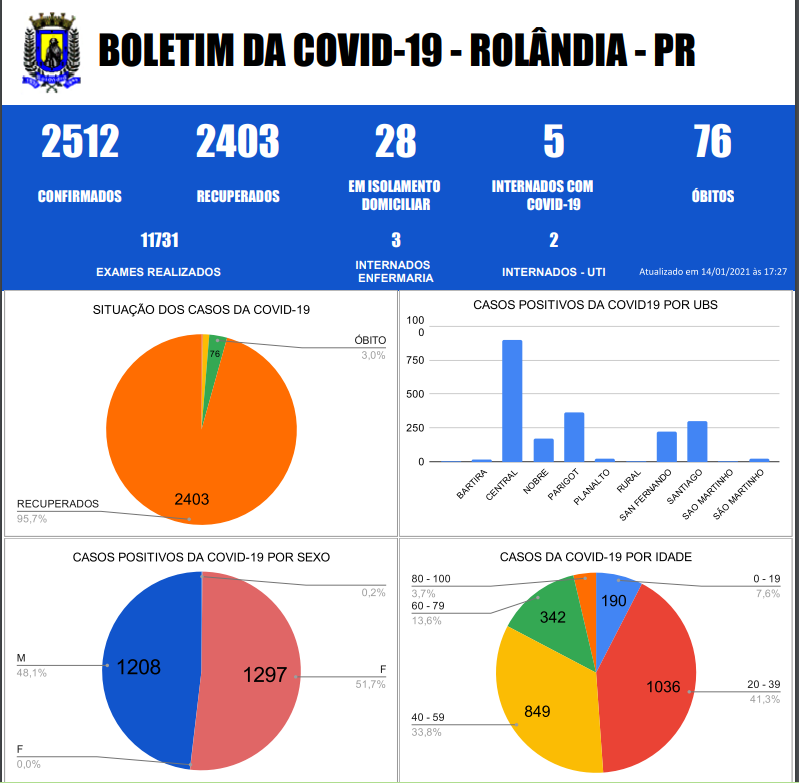 ROLÂNDIA REGISTRA 76 ÓBITOS POR COVID-19Com pesar e solidariedade aos familiares e amigos, a Secretaria Municipal de Saúde de Rolândia informa que registrou dois óbitos por Covid-19. Óbitos - duas pacientes do sexo feminino: 1) 87 anosComorbi...