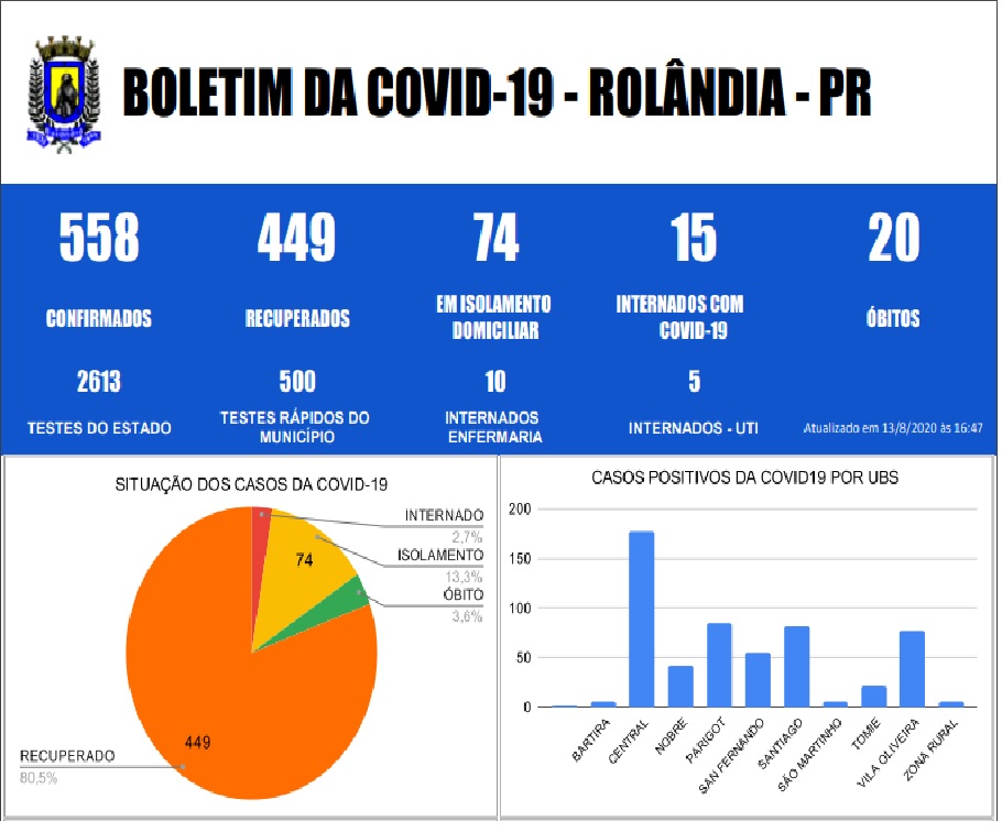 Com pesar e solidariedade aos familiares e amigos, a Secretaria de Saúde de Rolândia comunica o vigésimo óbito de paciente da cidade em decorrência de Covid-19: trata-se de uma homem, 76 anos, que deu entrada no Hospital São Rafael em nove de a...