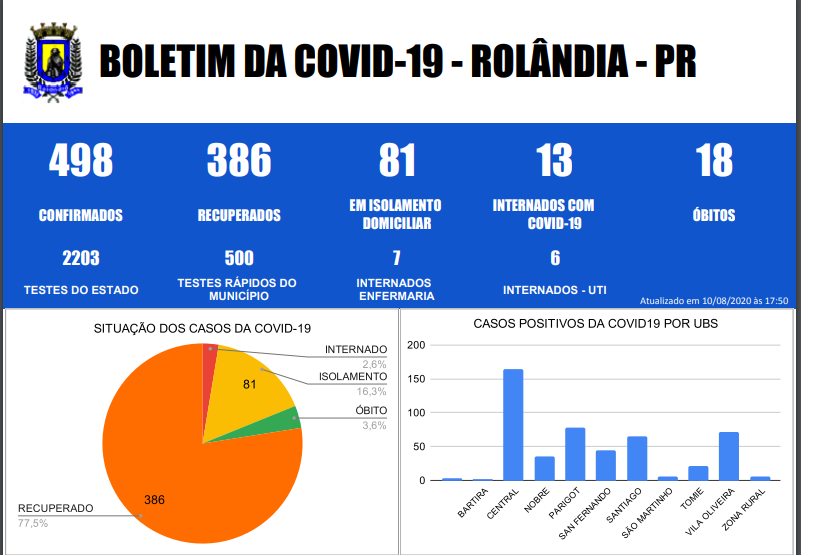 SECRETARIA MUNICIPAL DE SAÚDE CONFIRMA O DÉCIMO OITAVO ÓBITO POR COVID-19Com pesar e solidariedade aos familiares e amigos, a Secretaria de Saúde de Rolândia comunica o décimo oitavo óbito de paciente da cidade em decorrência de Covid-19: tra...