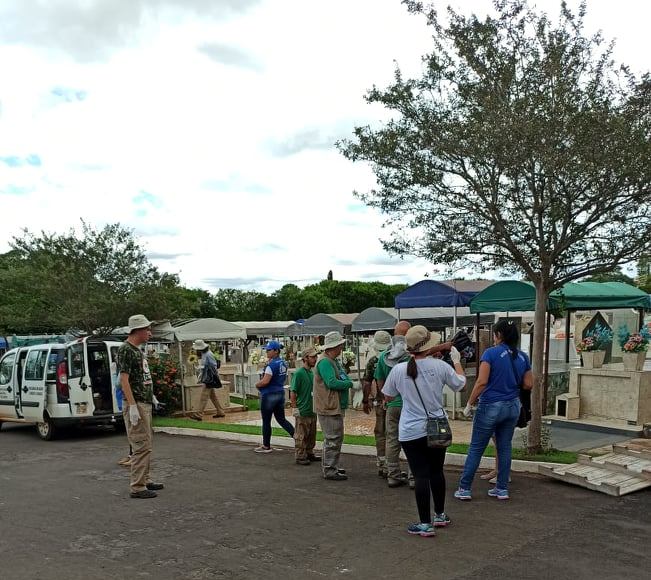 Equipes de Agentes de Combate a Endemias estão fazendo uma grande varredura no Cemitério Municipal Central em vasos nos túmulos e itens de decoração nas carneiras, para eliminar possíveis criadouros do mosquito que transmite a dengue. ...