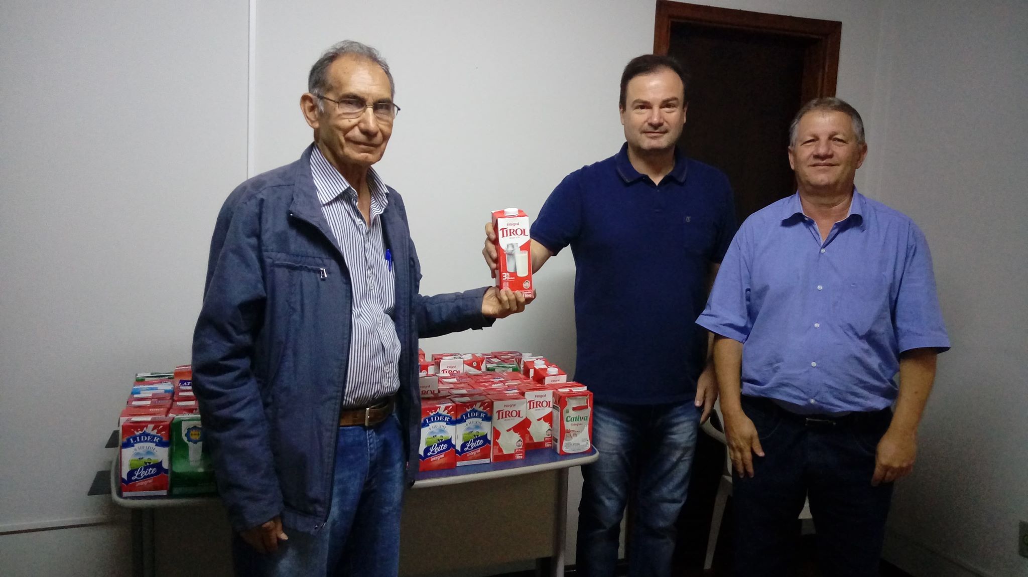 O Prefeito Doutor Francisconi (como Presidente da Junta Militar Municipal) e o Secretário da Junta Militar de Rolândia, José Luis Anselmo, entregaram nesta segunda-feira, 21 de outubro, 90 litros de leite longa vida para o Diretor do L...