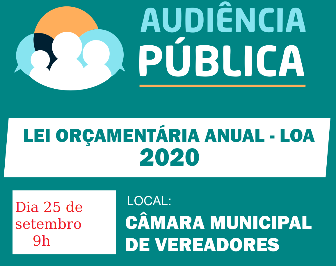 A Prefeitura convida toda a população a participar da AUDIÊNCIA PÚBLICA sobre a discussão no processo de elaboração do Projeto de Lei Orçamentária (LOA) para o exercício de 2020. O evento será no dia 25 de setembro, quarta-feir...