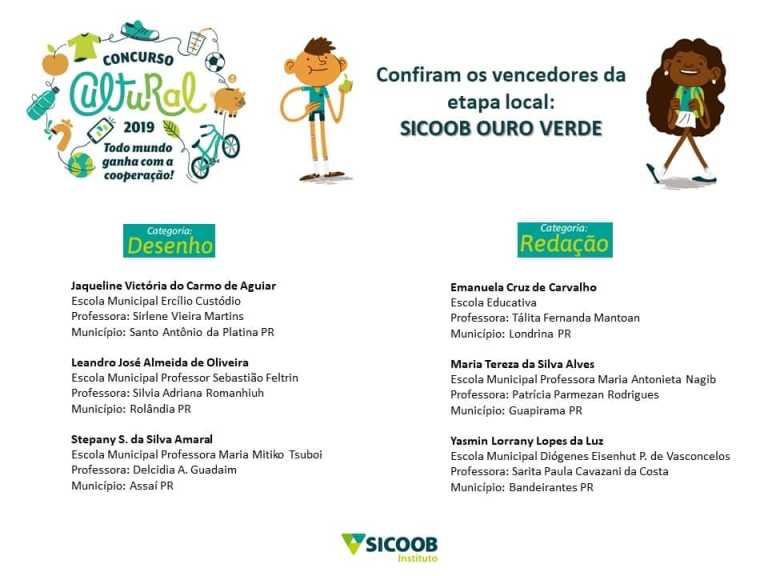 O aluno Leandro José Almeida de Oliveira, da Escola Municipal Sebastião Feltrin, na Vila Oliveira, foi premiado em nível regional pelo Sicoob Ouro Verde, em seu Concurso Cultural. Na categoria desenho, com a ajuda da Professora Silvia Adriana Ro...