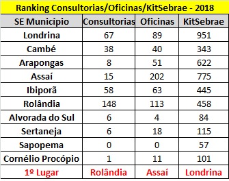 O SEBRAE detalhou o ranking de alguns atendimentos das Salas do Empreendedor da região e Rolândia foi aquela que que mais prestou consultorias no mês de maio. Dentre os serviços e atendimentos prestados no último mês, Rolândia registrou...