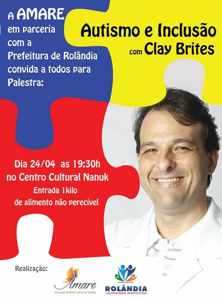 A Associação de Mães Especiais de Rolândia (AMARE), em parceria com a Secretaria Municipal de Educação, convidam a população para participar da palestra com o tema “Autismo e Inclusão”, proferida pelo mé...