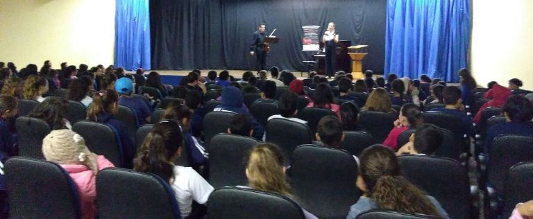 Os alunos das Escolas Municipais Vitório Franklin, Maria Teixeira e Parigot de Souza estiveram no Centro Cultural Nanuk e tiveram contato com música de Câmara, em um concerto com piano e violino. Os músicos Orlei Machado, violino e Loraine Tatt...