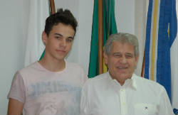 Patrícia Raquel (namorada do Jean), Jean Felipe (Mister), Johnny Lehmann (Prefeito) e Ângela Regina Trevisan (mãe do Jean). &...