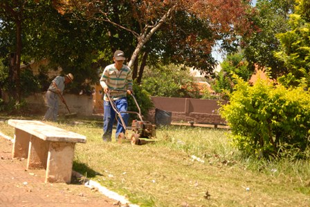 Praças e canteiros das principais avenidas da cidade são alvos neste momento do serviço que está sendo feito aproveitando o tempo sem chuva, que ocasiona aumento significativo das horas trabalhadas. Em outros pontos do município o trabalho...