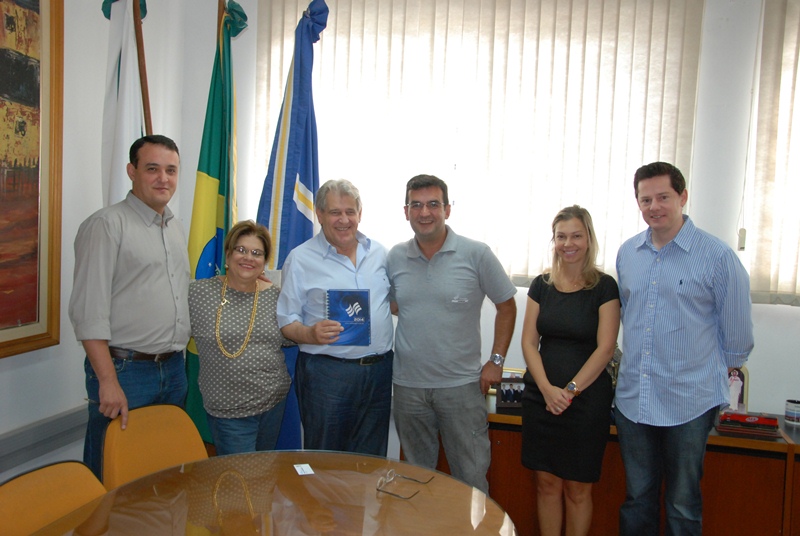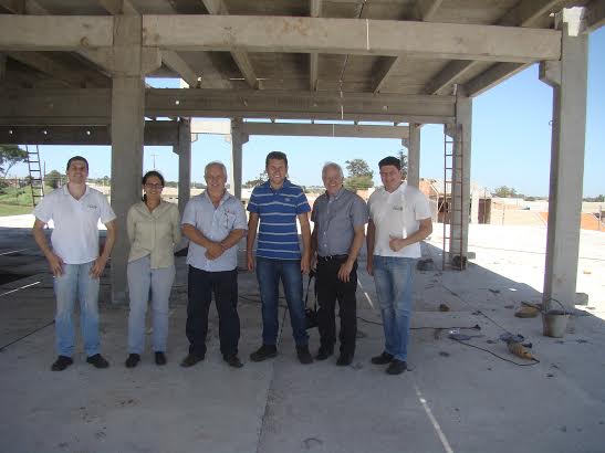 Na foto os responsáveis pela continuidade da obra, a ser realizada pela Construtora Fênix, Marcio e Marcio (cuja mão de obra será toda de Rolândia), a Engenheira Regiane, Sr. Carlos e Eng. Paulo (da pré moldados Serpeloni) e Dr. Getulio A...