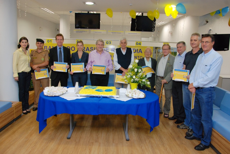 A cerimônia capitaneada pelo gerente da agência, Carlos Henrique Calixto, contou ainda com a presença do superintendente regional do BB, Marcio Antonio de Almeida Mello, da presidente da Câmara de vereadores, Sabine Giesen, dos vereadores O...