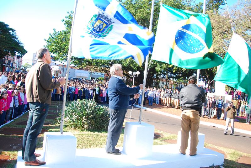 As autoridades presentes no evento participaram do hasteamento da bandeira nacional, do Paraná e de Rolândia. Todos os presentes também puderam assistir as apresentações dos alunos das Escolas Municipais, Monteiro Lobato com a dança, Ar...