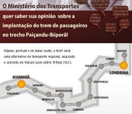A ligação ferroviária de 152 quilômetros cobrirá 13 municípios – Paiçandu, Maringá, Sarandi,? Marialva, Mandaguari, Jandaia do Sul, Cambira, Apucarana, Arapongas, Rolândia, Cambé, Londrina e Ibiporã – atendendo uma população de...
