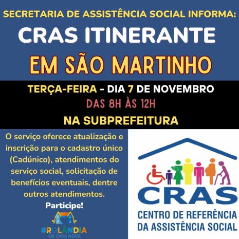 A secretaria de Assistência Social promoveu, nesta terça-feira (31), na subprefeitura do distrito Nossa Senhora Aparecida, Bartira mais um "CRAS ITINERANTE". Muitas pessoas puderam aproveitar para atualizar a inscrição...