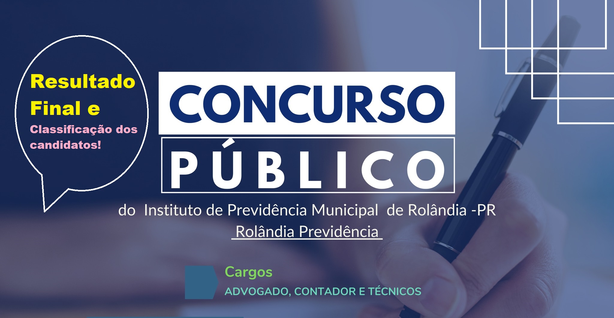 RESULTADO FINAL - CONCURSO PÚBLICO DO ROLÂNDIA PREVIDÊNCIA Nesta terça-feira, dia 12 de setembro, o Rolândia Previdência informa aos 584 candidatos inscritos que a COPS/UEL divulgou o "Resultado Final" e a "Classificação dos candidatos" do C...