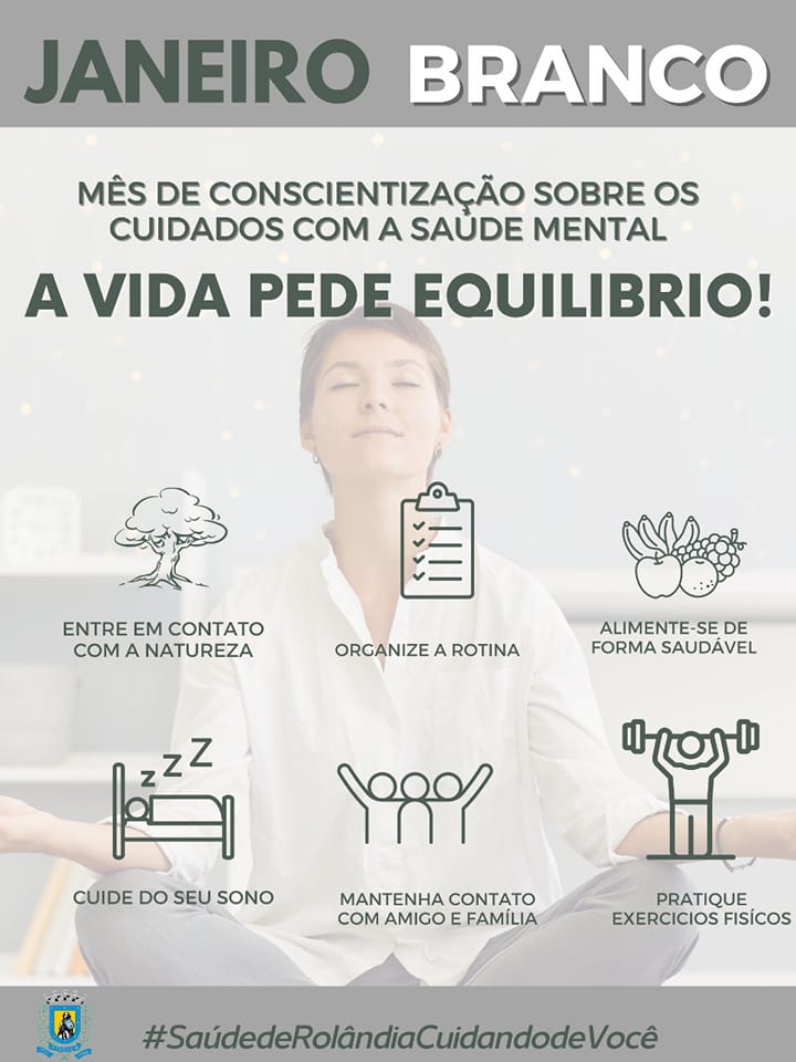 COMO ESTÁ A SUA SAÚDE MENTAL?A secretaria de Saúde informa que o "janeiro branco" é dedicado à sensibilização para os cuidados que previnem doenças decorrentes do estresse, incluindo depressão, ansiedade e pânico....