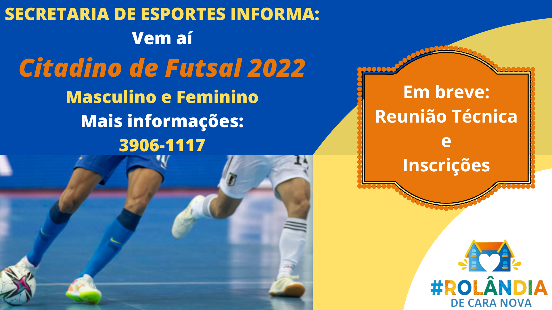 SECRETARIA DE ESPORTES INFORMA: Vem aíCitadino de Futsal 2022Masculino e FemininoMais informações:3906-1117...