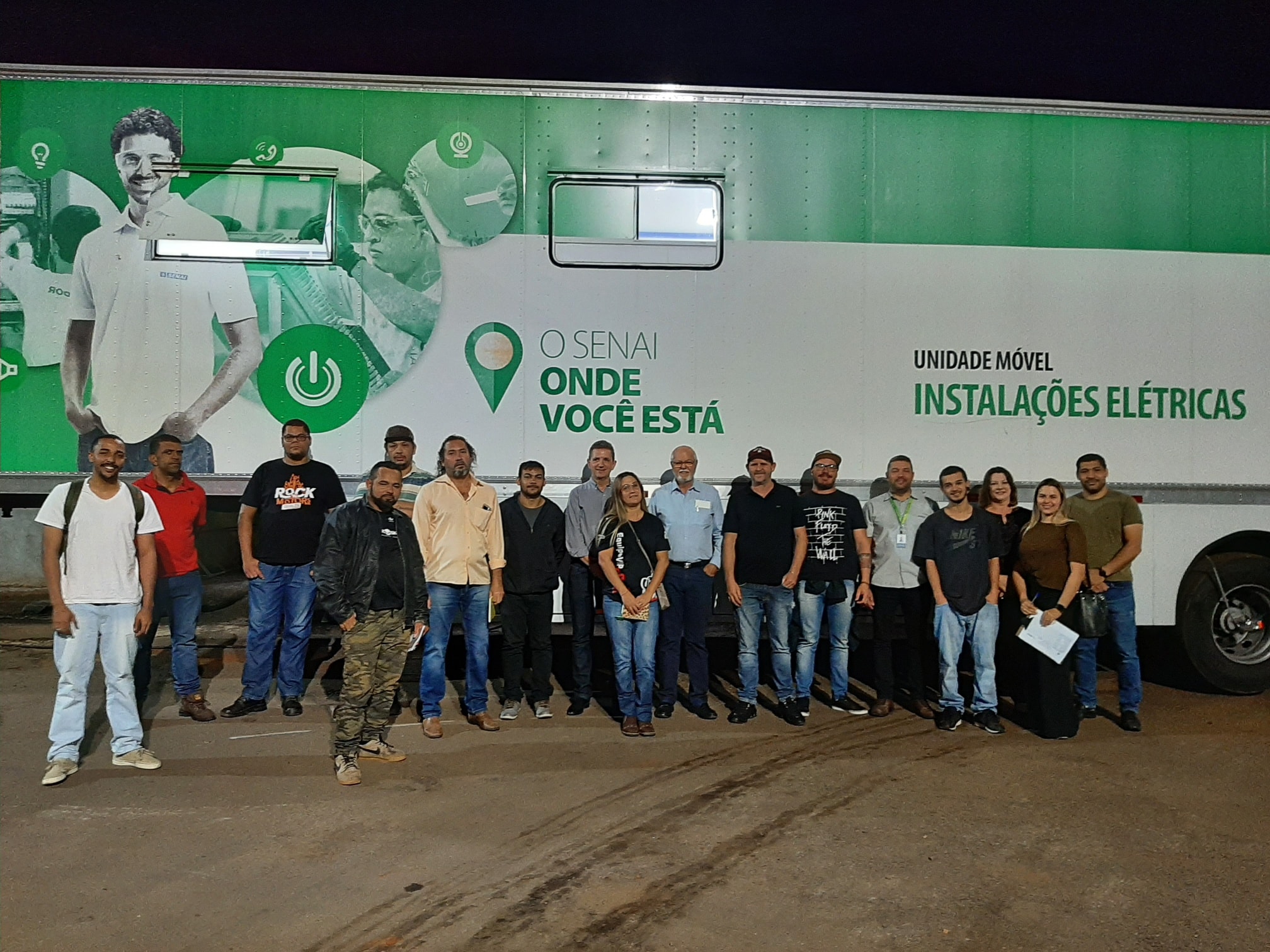 AILTON MAISTRO DÁ AS BOAS VINDAS AOS ALUNOS DO CURSO DE INSTALAÇÃO ELÉTRICA INDUSTRIAL, VIA CARRETA DO CONHECIMENTO, ESTACIONADA NO PÁTIO INTERNO DA PREFEITURAAs secretarias municipais de Desenvolvimento Econômico e de Assistência Social, por ...