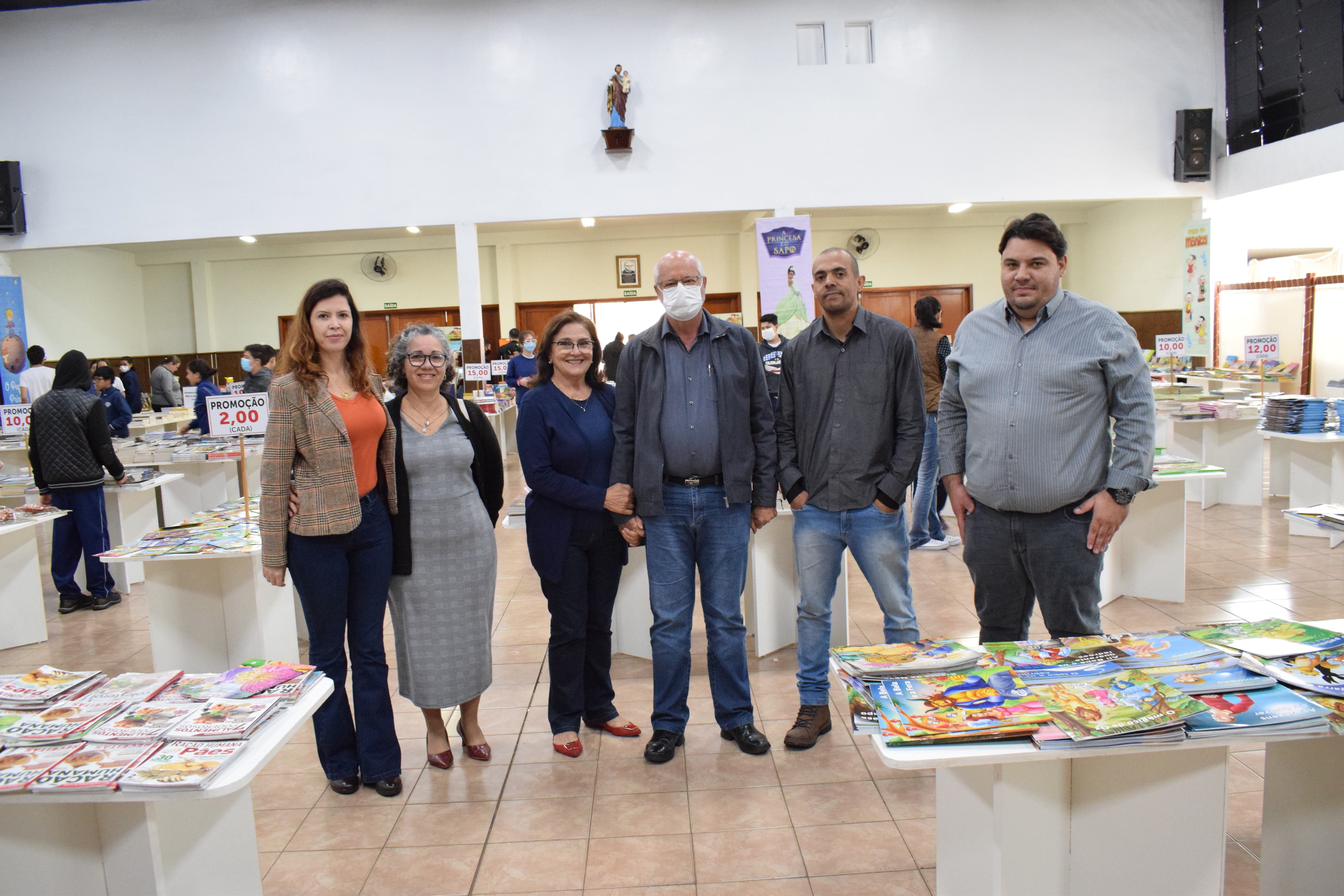 AILTON MAISTRO VISITA FEIRA DE LIVROS NO CENTRO PAROQUIAL JOÃO DE DEUSO prefeito Ailton Maistro, a primeira-dama Ana Maria Mungo Maistro, o vice-prefeito Márcio Vinícius, a secretária de Educação Leise Camargo e a secretária de Administração...