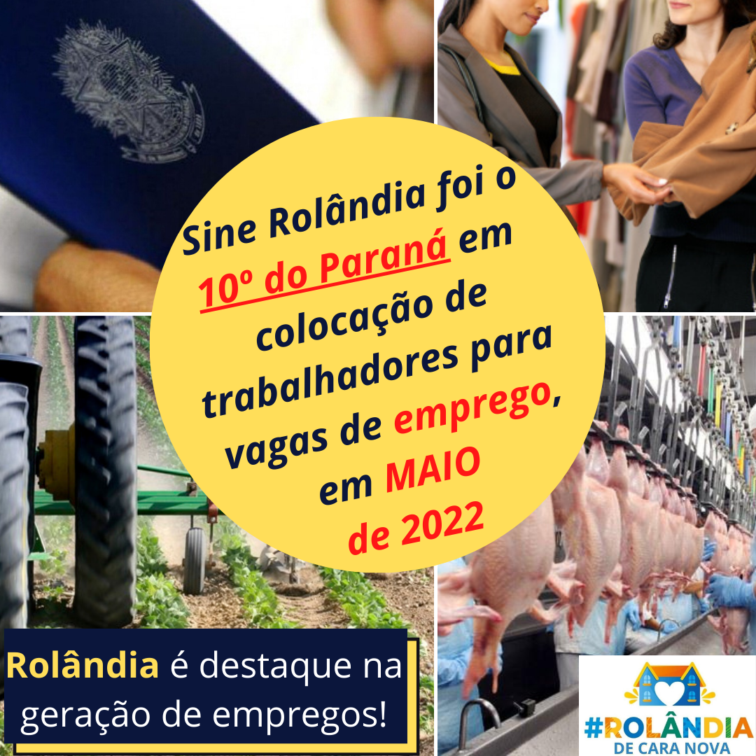 SINE ROLÂNDIA FECHA MAIO COM 228 COLOCAÇÕES NO MERCADO DE TRABALHO - O DÉCIMO MELHOR RESULTADO DO PARANÁSegundo dados da Secretaria Estadual de Justiça, Família e Trabalho (SEJUF), a Agência do Trabalhador/SINE Rolândia, da Secretaria Munici...