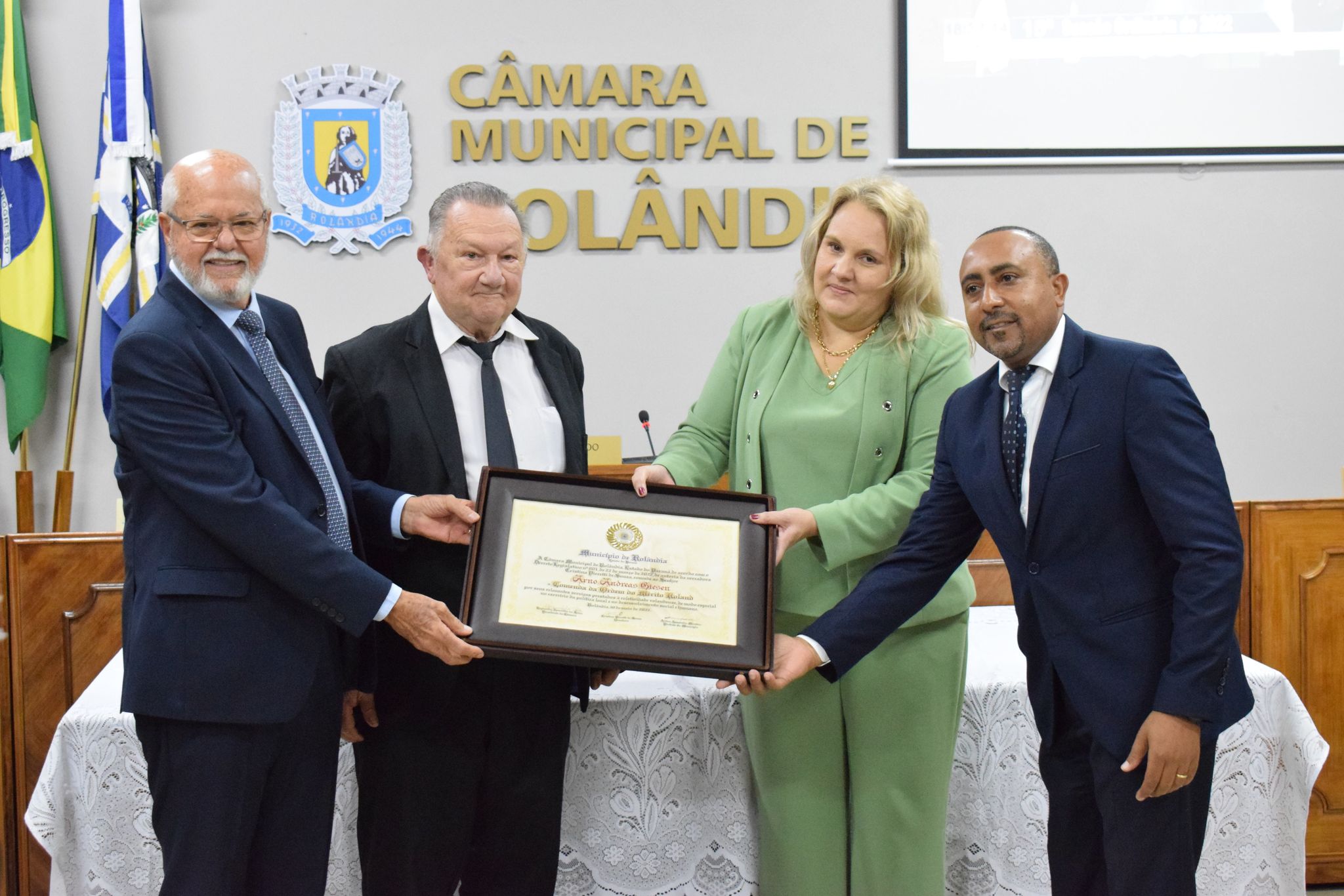 PREFEITO PRESTIGIA ENTREGA DA COMENDA ROLAND PARA ARNO GIESENNa noite desta segunda-feira, dia 30, o prefeito Ailton Maistro, a primeira-dama Ana Maria Mungo Maistro e o secretário de Planejamento Zeca Salgueiro prestigiaram a sessão solene, promov...