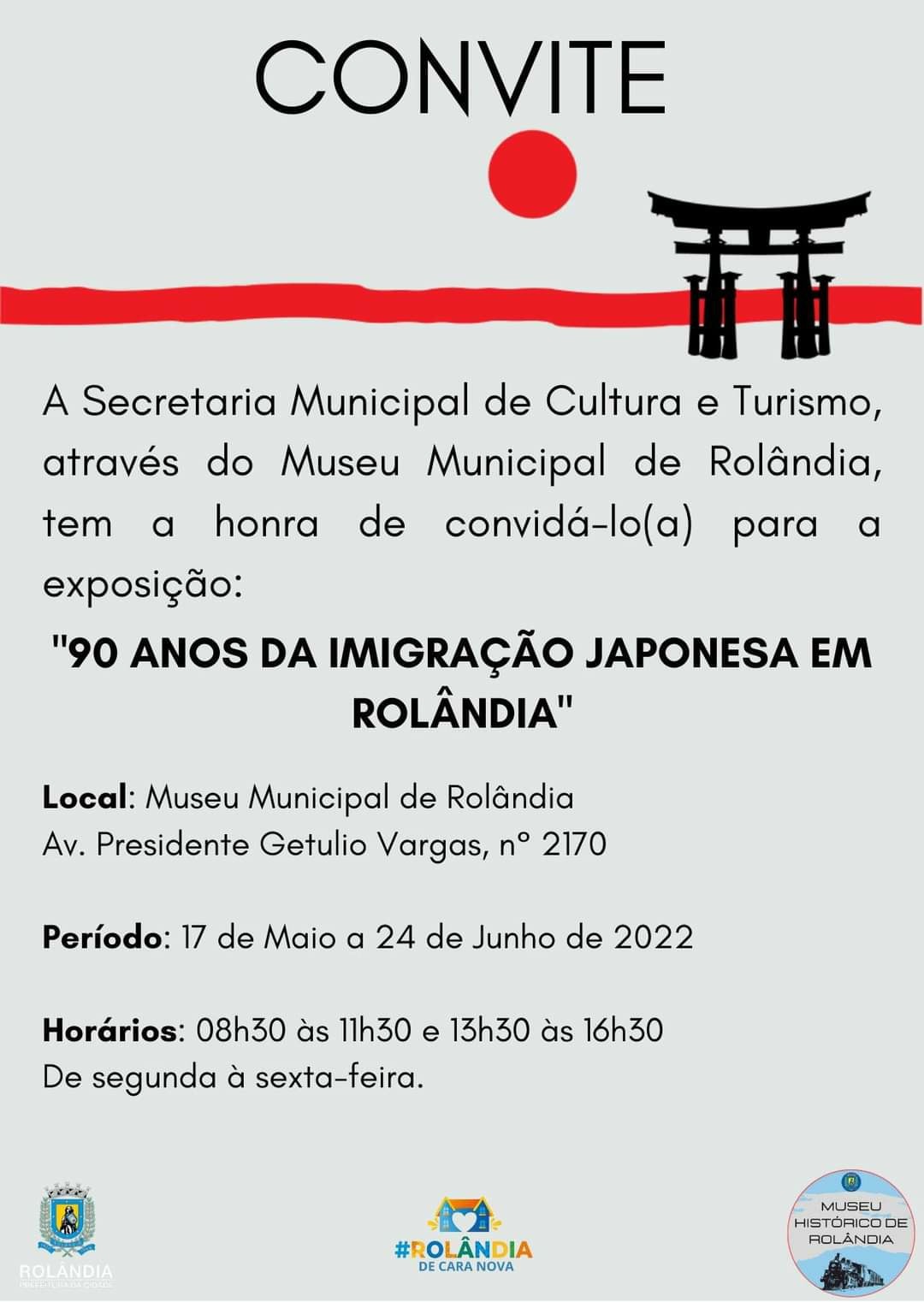 EXPOSIÇÃO CELEBRA A IMIGRAÇÃO JAPONESA EM ROLÂNDIAEm comemoração ao aniversário da chegada dos primeiros imigrantes japoneses em nossa cidade, o Museu Histórico apresenta a exposição "90 ANOS DA IMIGRAÇÃO JAPONESA EM ROLÂNDIA", que est...