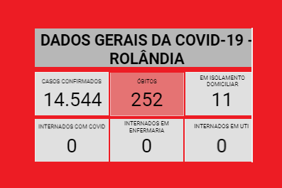 BOLETIM COVID-19 - 19.04.2022 - 15h30A secretaria municipal de Saúde informa sobre os casos de covid-19. Na atualização do boletim, três contaminações e um paciente curado. Rolândia tem atualmente 13 pacientes com covid-19, todos em isolamen...