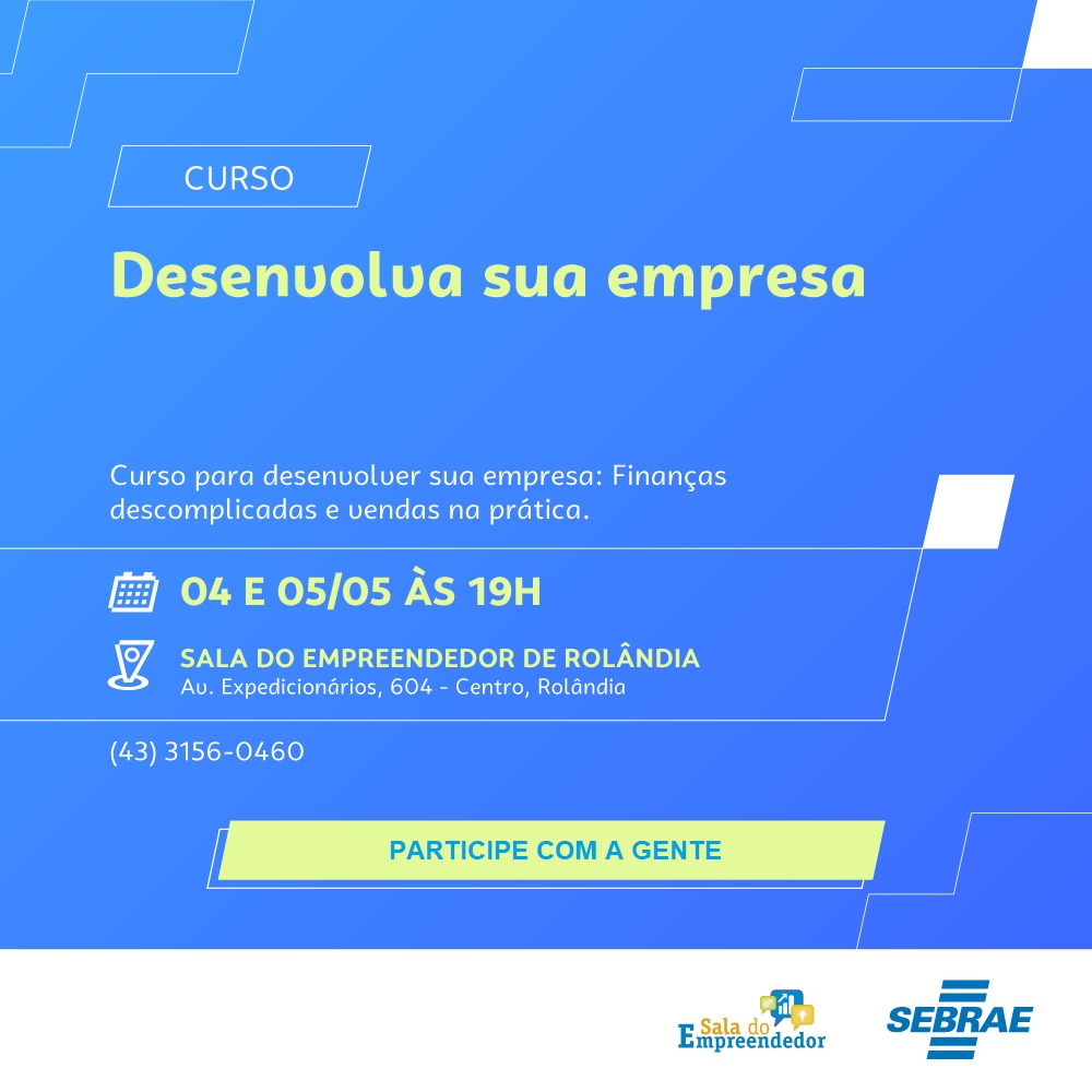 A Sala do Empreendedor, da secretaria de Desenvolvimento Econômico, abre inscrições para um curso gratuito, que será realizado na ACIR. Interessados podem entrar em contato pelo telefone ou whatsapp 3156 0460 (das 8h às 13:30) para mais infor...