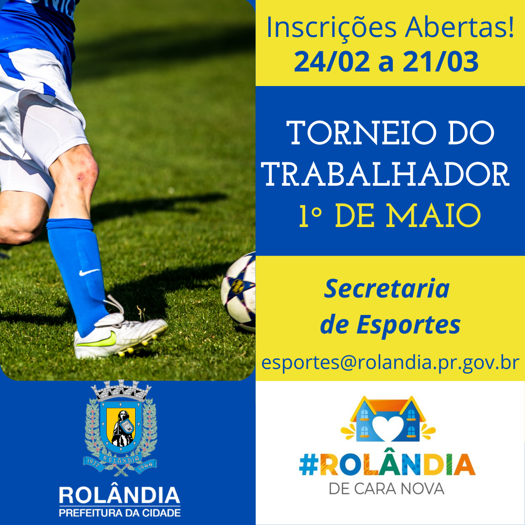 SECRETARIA DE ESPORTES ABRE INSCRIÇÕES PARA O "TORNEIO DO TRABALHADOR - 1º DE MAIO"A secretaria de Esportes informa sobre a realização da tradicional competição de futebol "Torneio do Trabalhador - 1º de maio".Inscrições: 24/02 a 21/03.Fich...